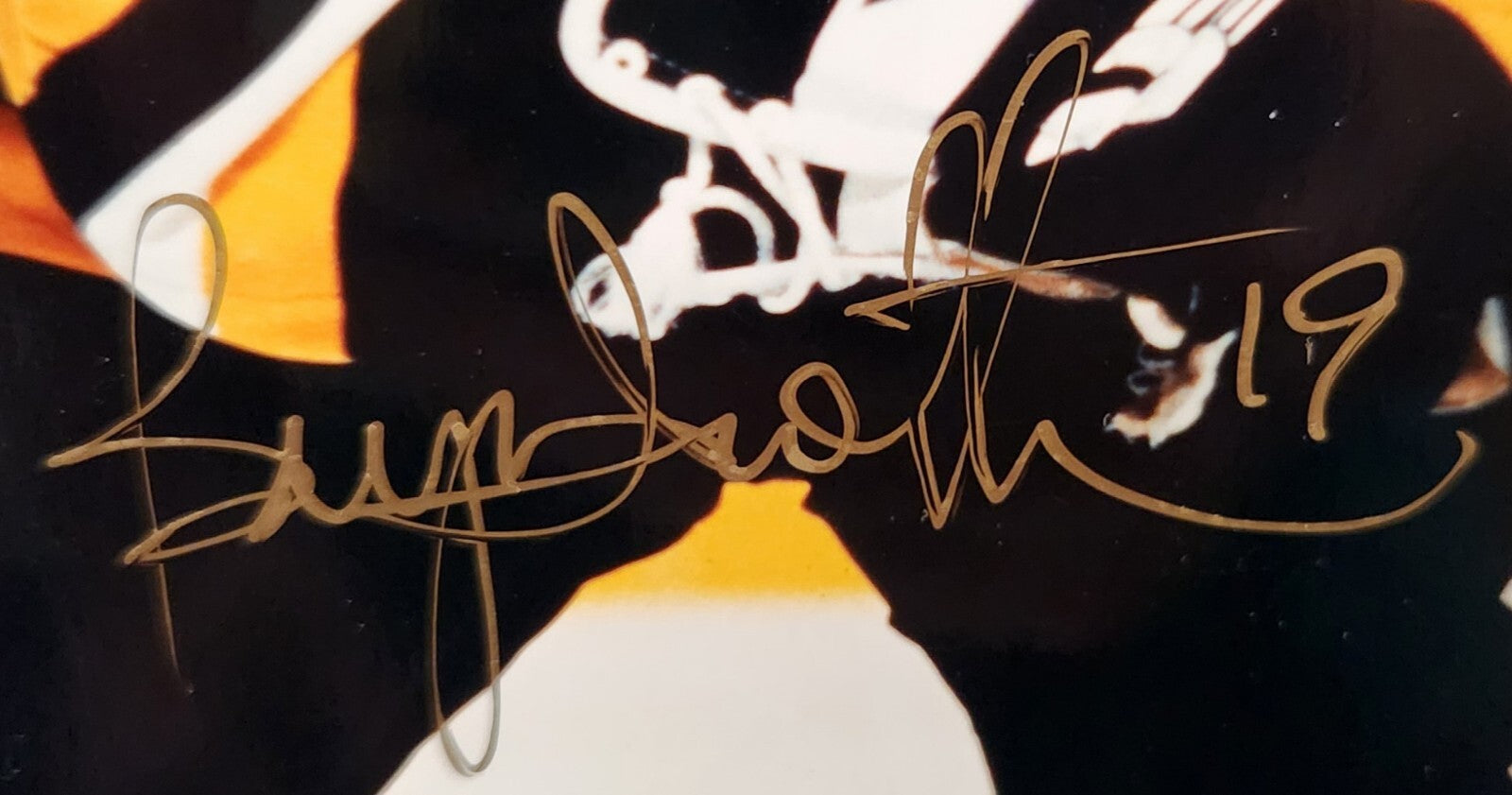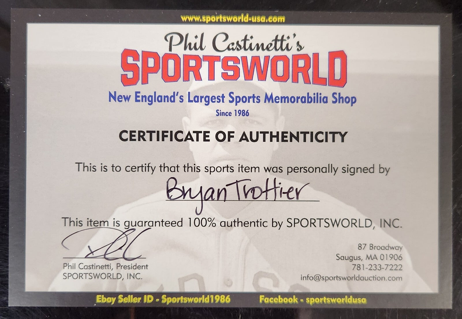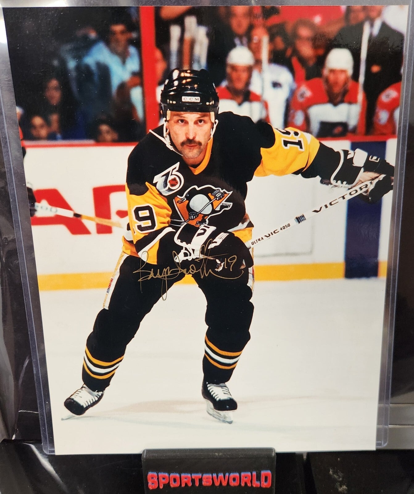 This 8x10 photo features the signature of hockey legend and Hall of Famer Bryan Trottier. The photo is an original and comes with a certificate of authenticity. Trottier played for the Pittsburgh Penguins and NY Islanders, making him a valuable addition to any sports memorabilia collection. The photo is perfect for fans of the Penguins or hockey in general.