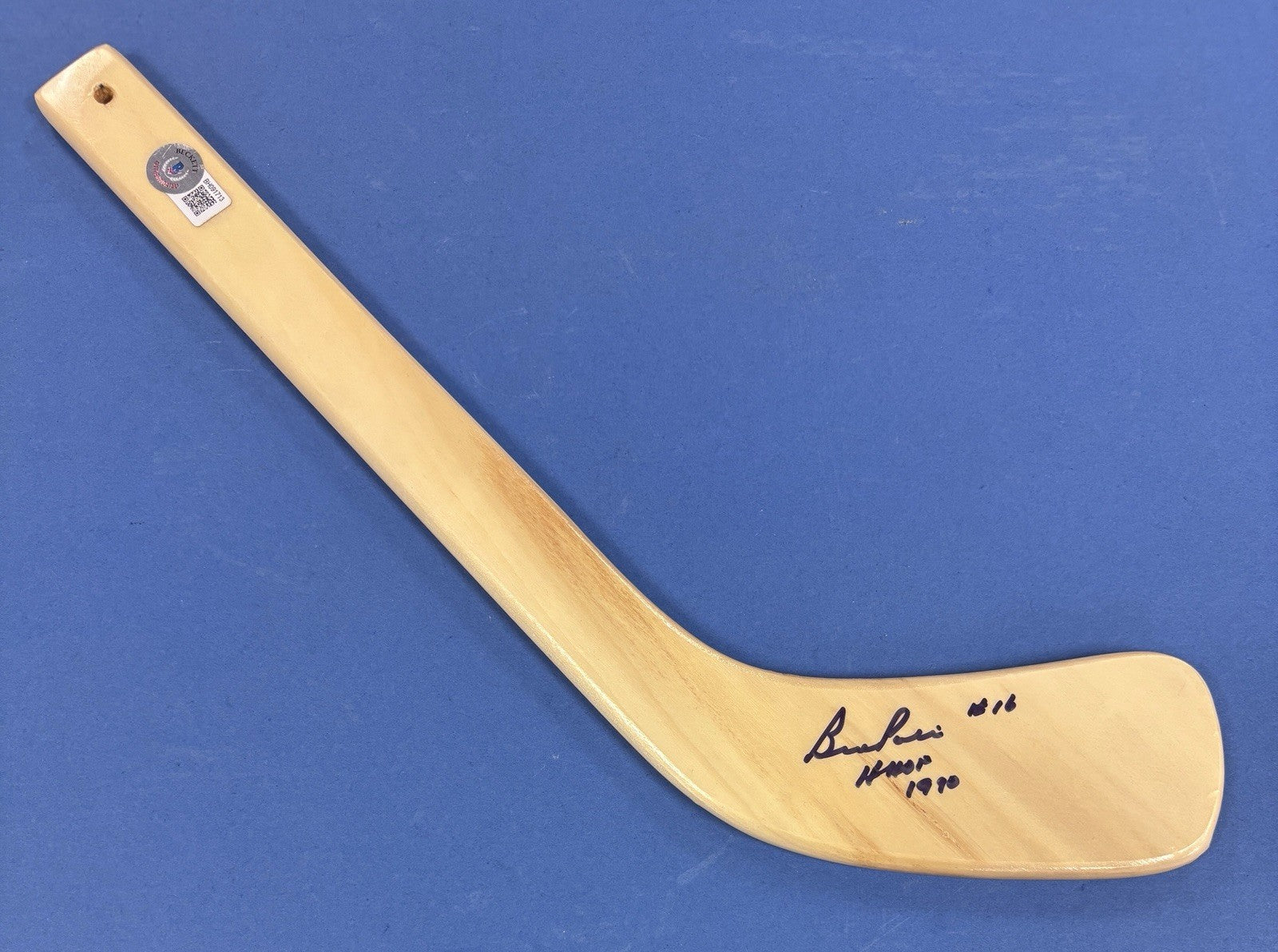 The signed mini hockey stick. This unique item is a must-have for hockey fans and collectors looking to own a piece of history from one of the sport's most respected officials. The mini stick adds a personal touch with the players signature, making it a valuable and cherished item for any hockey enthusiast.