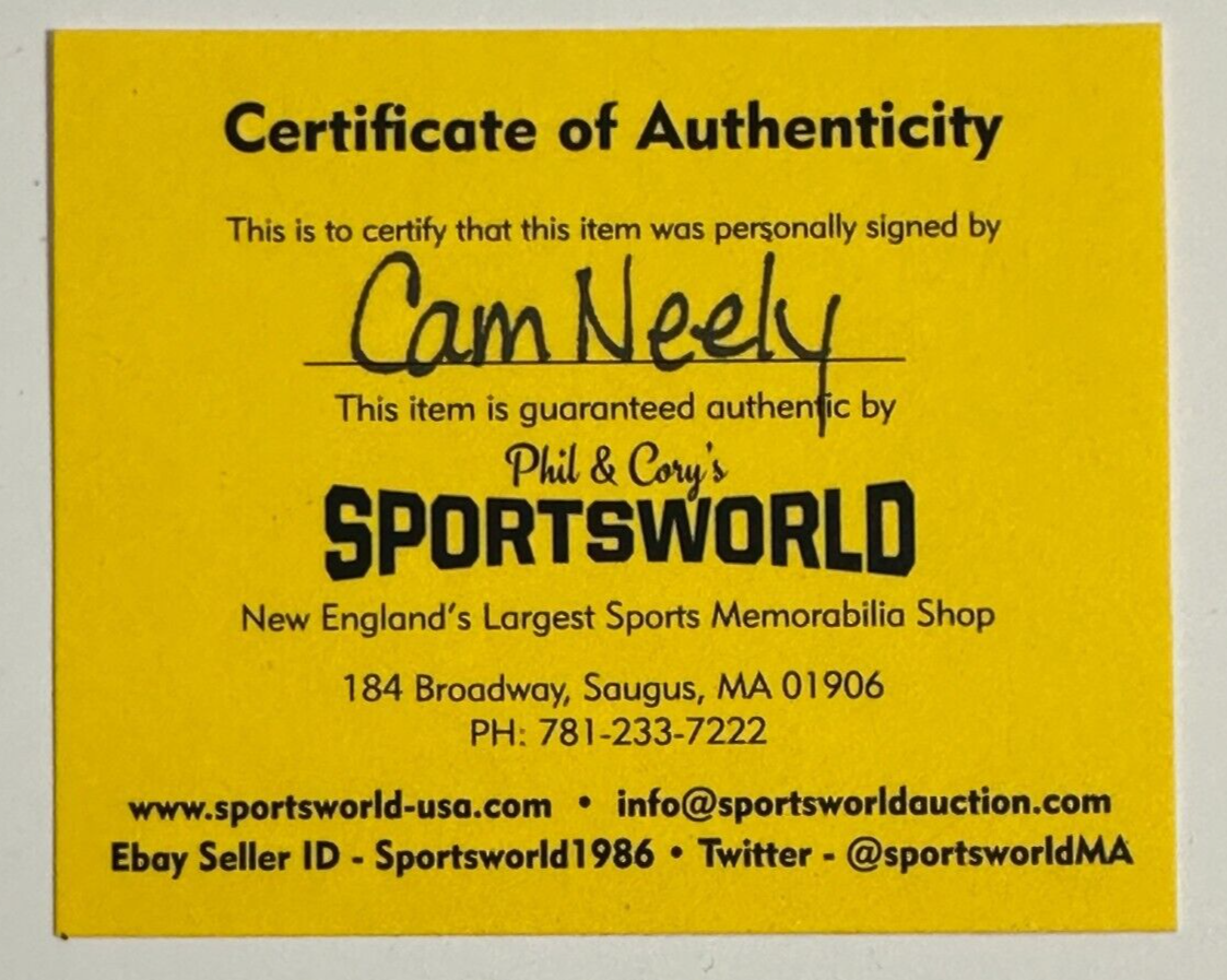 We're offering this Vancouver Canucks Hockey Puck Autographed by former star Cam Neely. It's in nm condition and comes with a COA issued by Sportsworld, New England's Largest Sports Memorabilia Store and his signature is guaranteed to be 100% authentic. The puck will be shipped in a plastic display square, and we will combine shipping on similar items.
