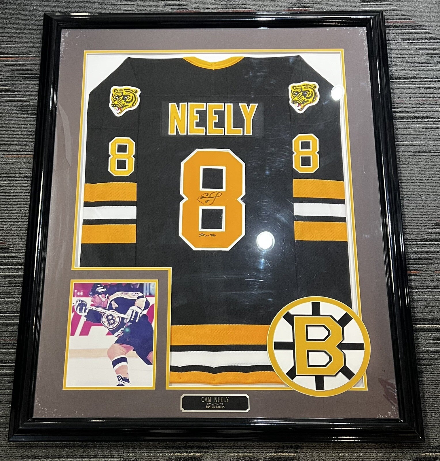 This custom framed jersey signed by Cam Neely is a must-have for any hockey fan. Along with the Bruins logo, it comes with an 8x10 for display. The jersey is an original product and has been carefully framed for preservation. This item is perfect for collectors, fans, or anyone looking for a unique piece for their home or office.