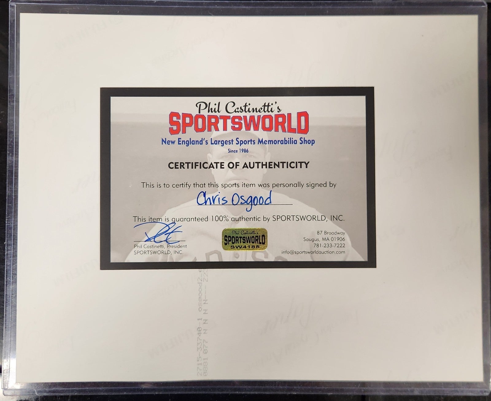 Capture a piece of hockey history with this authentic 8x10 photo autographed by the legendary Chris Osgood of the Detroit Red Wings. This original signed photo comes with a Certificate of Authenticity, ensuring its legitimacy and making it a must-have for fans and collectors alike.
