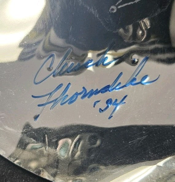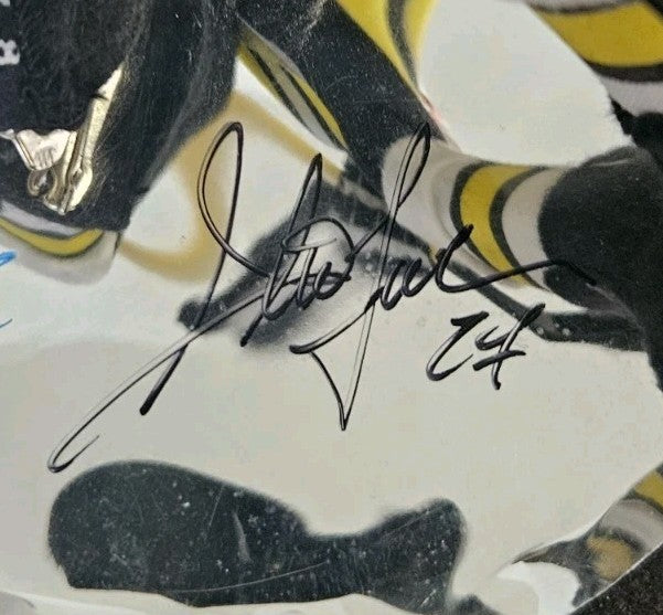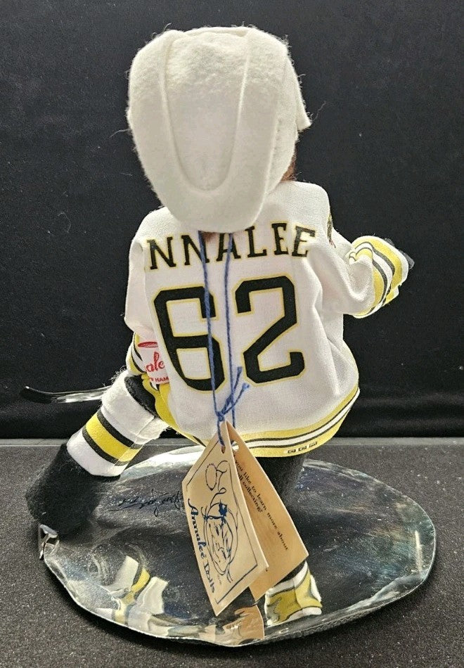 This Boston Bruins Annalee doll is a must-have for any hockey fan! It features the signatures of Chuck Thorndike the son of Annalee & Steve Leach, a former Bruin. The doll is an original piece and has been authenticated by Sportsworld, ensuring its authenticity.