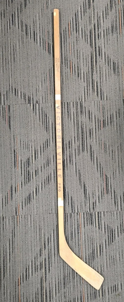 The product is a vintage Victoriaville pro hockey stick that was game-issued to Dallas Smith of the Boston Bruins in the 1970s. It is an original piece of sports memorabilia and would be a valuable addition to any hockey fan's collection. The stick has historical significance as it was issued to a player from a well-known NHL team during a specific time period, adding to its desirability for collectors of vintage sports memorabilia.
