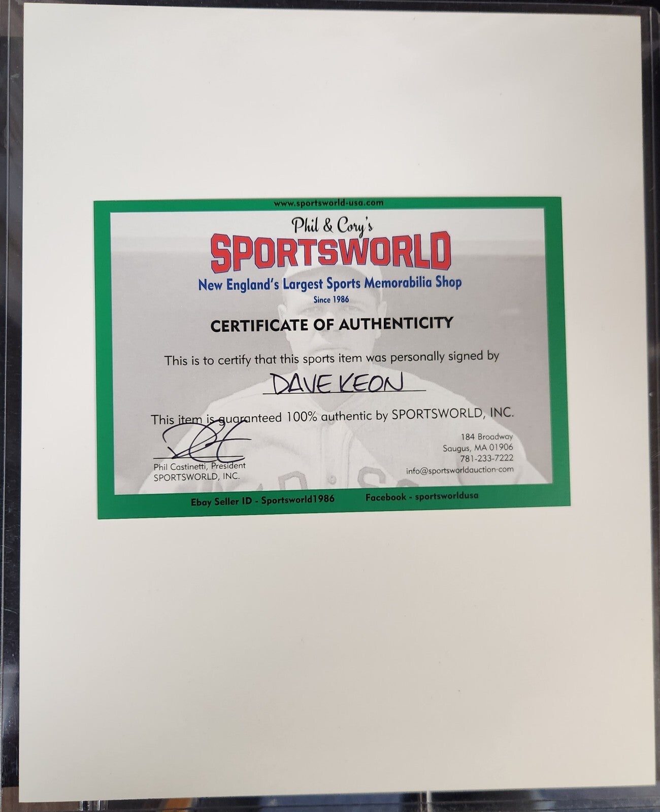 The COA is from Sportsworld- New England's largest sports memorabilia shop. Please refer to our pictures to be sure.