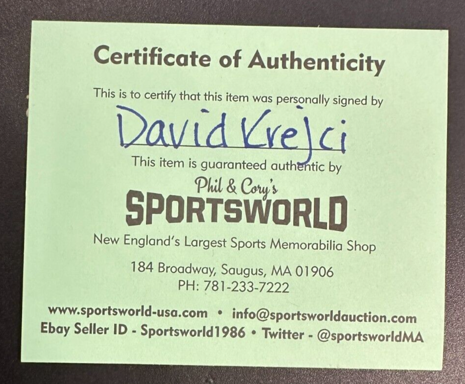 We're offering Official 2018 China Games Boston Bruins Game Puck Autographed by NHL All-Star David Krecji. It's in nm condition and it comes with a COA Issued by Sportsworld, New England's Largest Sports Memorabilia Store and his signature is guaranteed to be 100% authentic. This puck will be sent in a plastic display square, and we will combine on shipping for similar items!