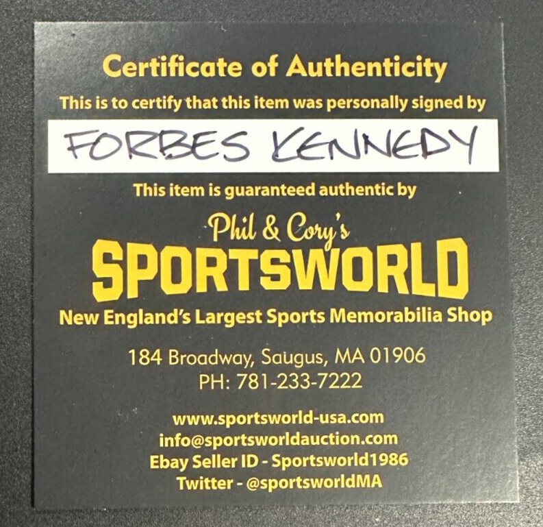 We're offering this Boston Bruins Hockey Puck Autographed by former Star Forbes Kennedy. It's in nm condition and it comes with a COA issued by Sportsworld. New England's Largest Sports Memorabilia Store and his signature is guaranteed to be 100% authentic. It will be shipped in a plastic display square, and we will combine on shipping for similar items!