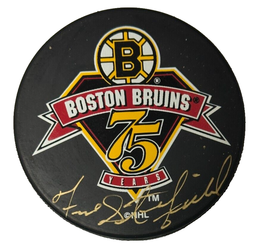 Fred Stanfield Autographed Boston Bruins 75th Anniversary Hockey Puck BAS