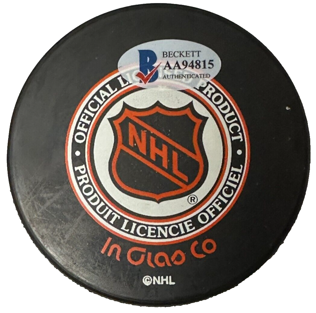 We're offering this Boston Bruins 75th Anniversary Hockey Puck Autographed by former Star Fred Stanfield. It's in nm condition and it comes with a COA & Matching Hologram Issued by BAS Beckett Authentication Services and his signature is guaranteed to be 100% authentic. We do have multiple pucks signed by Fred so the puck that you receive might not be the exact puck in the photo. It will be shipped in a plastic display square, and we will combine on shipping for similar items!