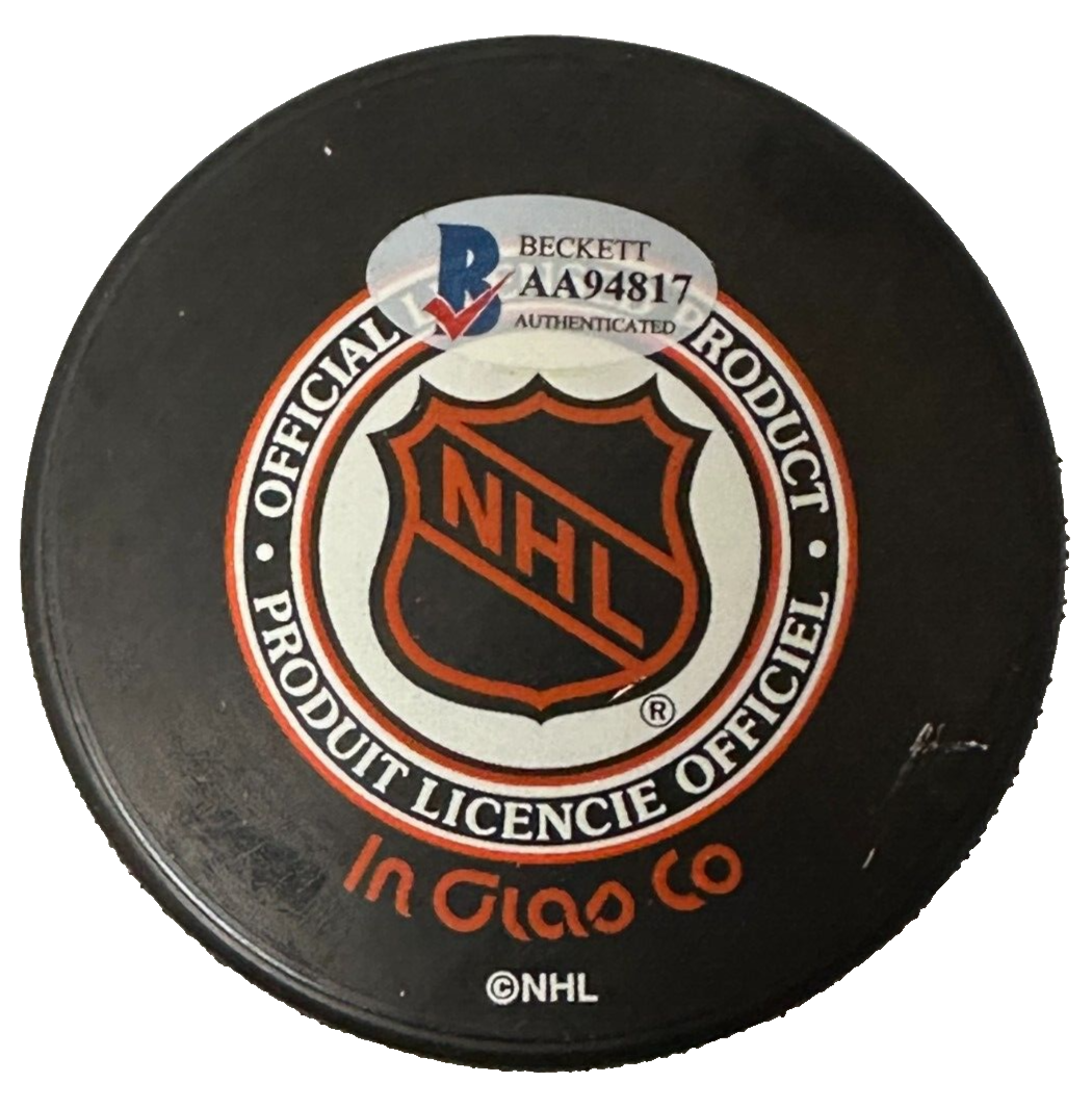We're offering this Buffalo Sabres Hockey Puck Autographed by former Star Fred Stanfield. It's in nm condition and it comes with a COA & Matching Hologram Issued by BAS Beckett Authentication Services and his signature is guaranteed to be 100% authentic. We do have multiple pucks signed by Fred so the puck that you receive might not be the exact puck in the photo. It will be shipped in a plastic display square, and we will combine on shipping for similar items!