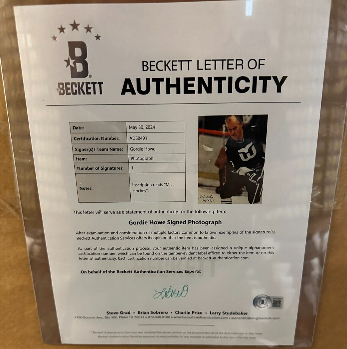 We're offering this Autographed 16x20 Photo of Hockey Hall of Famer Gordie Howe of the Hartford Whalers. It's beautifully matted & framed and it comes with a Hologram & Full Letter LOA Issued by BAS (AD58491) Beckett Authentication Serviced and is guaranteed to be 100% Authentic. The entire photo measures approx. 20" x 24". We will combine on shipping for similar items!