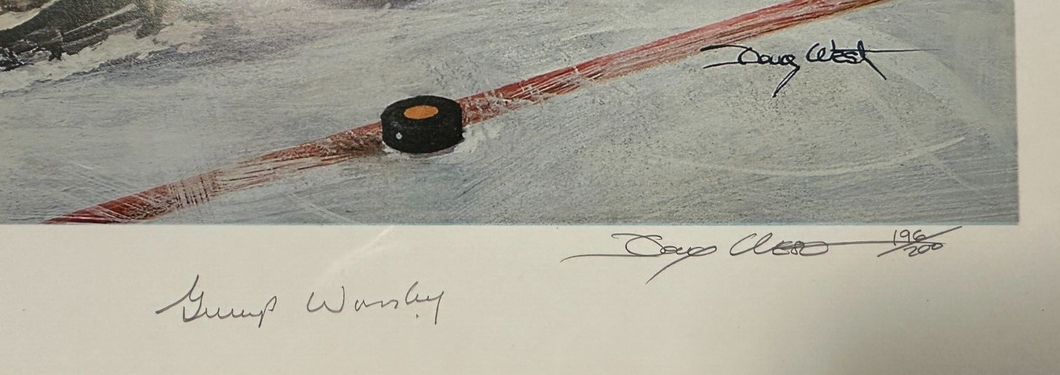 We're offering this 12x20 Lithograph Autographed by Hockey Hall of Famer Goalie Gump Worsley of the Montreal Canadiens as well as the artist Doug West. It is a limited edition numbered 196/200. It comes with a COA Issued by DC Sports and his signature is guaranteed to be 100% authentic. We will combine on shipping for similar items!