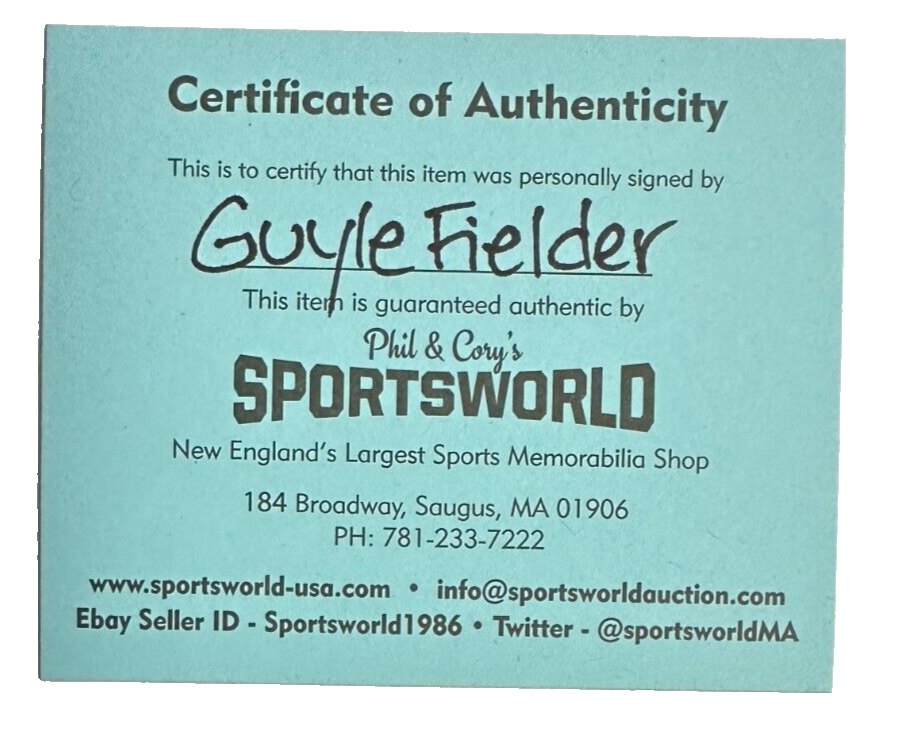 We're offering this Official Chicago Black Hawks Hockey Puck Autographed by former star Guyle Fielder. It's in nm condition and comes with a COA Issued by Sportsworld, New England's Largest Sports Memorabilia Store and his signature is guaranteed to be 100% authentic. We do have multiples of this puck signed by Guyle, so the puck you receive might not be the exact puck in the photo. The puck will be shipped in a plastic display square. We will combine on shipping for similar items!