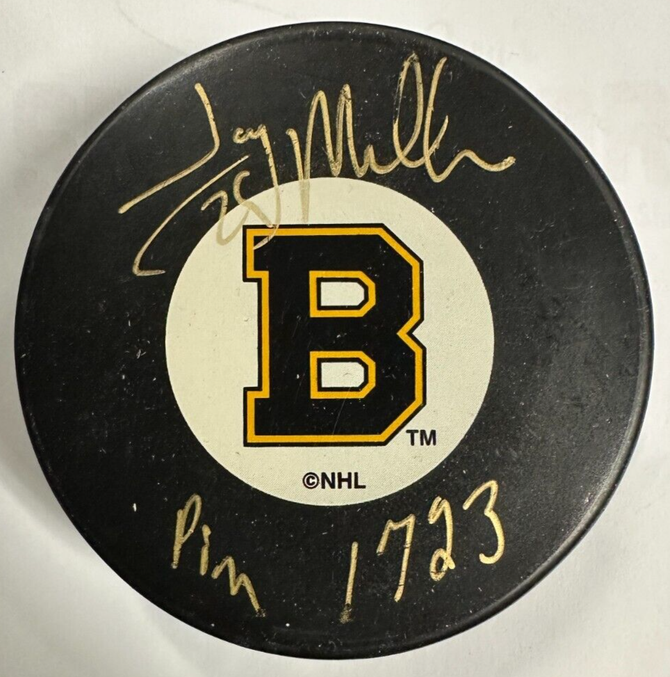 Jay Miller Autographed Boston Bruins Hockey Puck W/ PM 1723 Insc