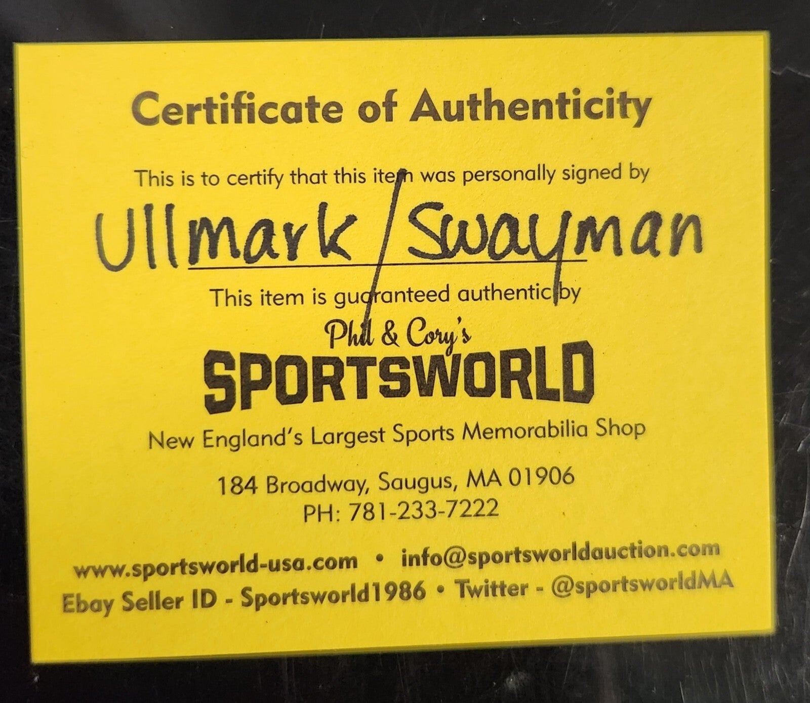 This Boston Bruins hockey puck is a must-have for any true hockey fan! It features the autographs of two of the team's top goaltenders in the last few years, Jeremy Swayman and Linus Ullmark. The puck is an original, with authentication from Sportsworld.