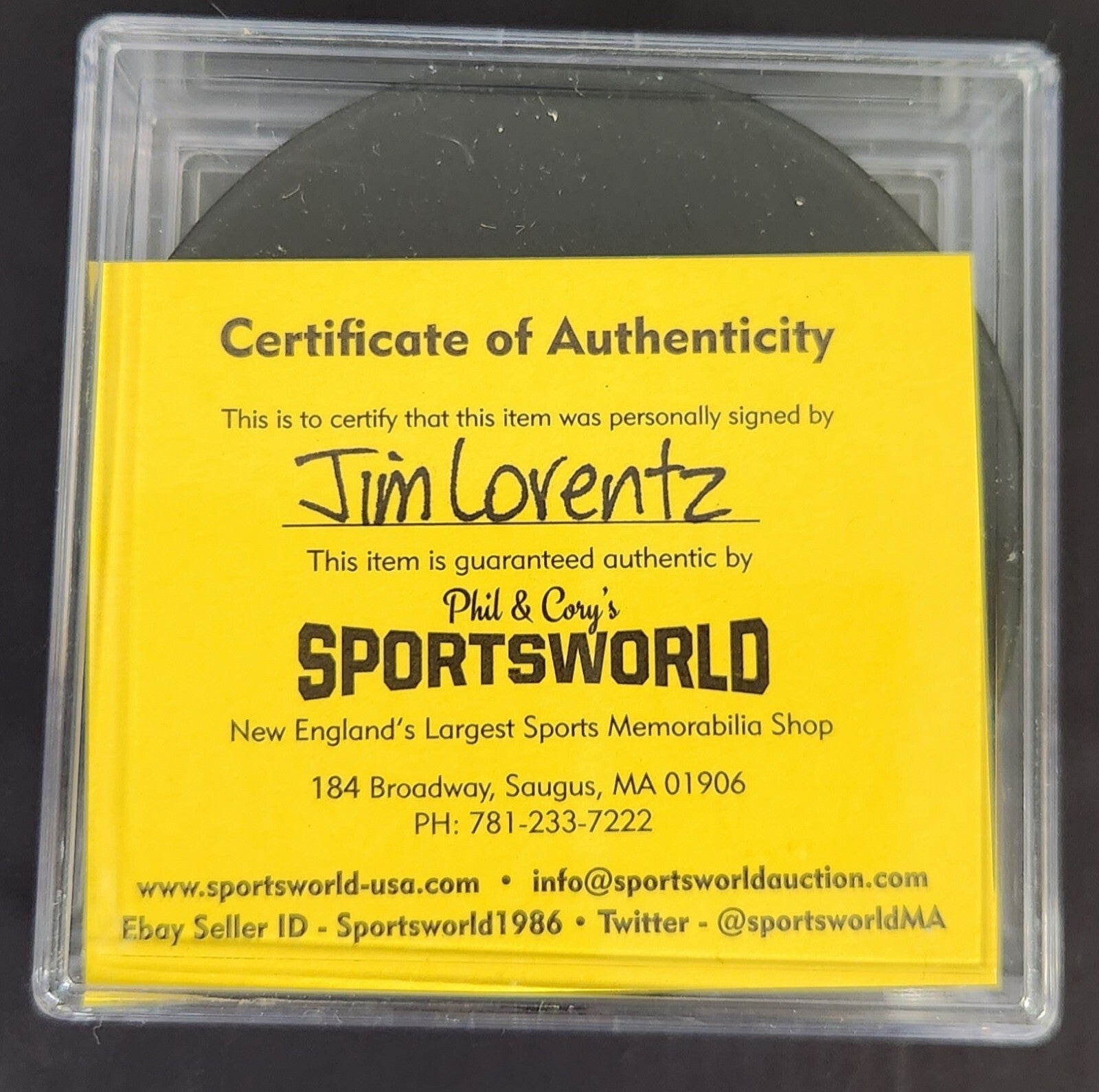 Jim Lorentz Signed 100th Year Boston Bruins Hockey Puck COA