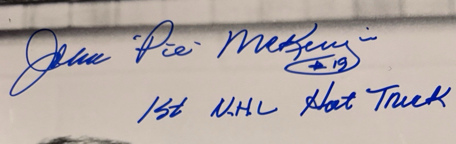 Capture a piece of hockey history with this authentic 16x20 photo featuring the legendary John “Pie” McKenzie with first hat trick inscription and Gerry Cheevers, signed by the players themselves. The photo comes with a certificate of authenticity from Sportsworld, ensuring the legitimacy and value of this collectible. Perfect for any fan of the sport or collector of hockey memorabilia, this piece is a must-have.