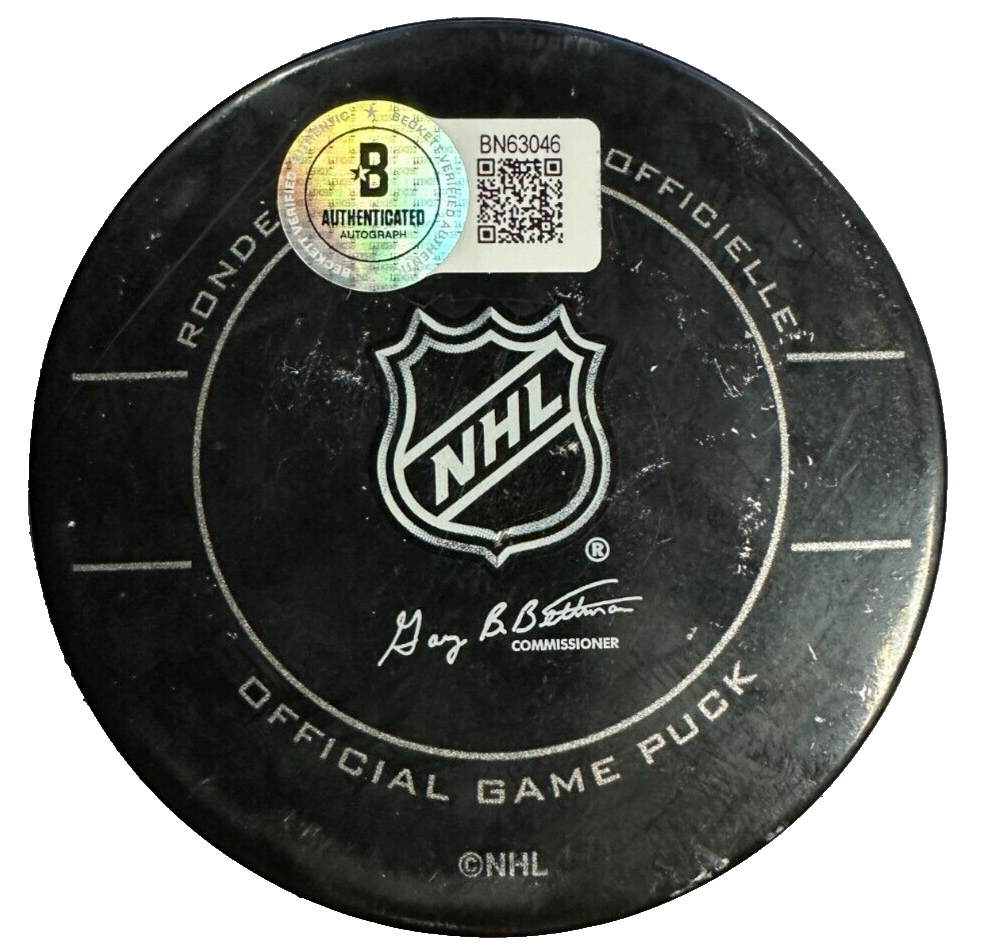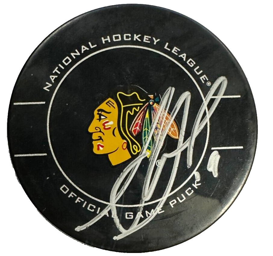We're offering this Chicago Blackhawks Official Game Puck Autographed by NHL All-Star Jonathan ToewsIt's in nm condition and it comes with a Hologram Issued by BAS (BN63046) Beckett Authentication Services and his signature is guaranteed to be 100% authentic. The puck will be shipped in a plastic display square, and we will combine on shipping for similar items.