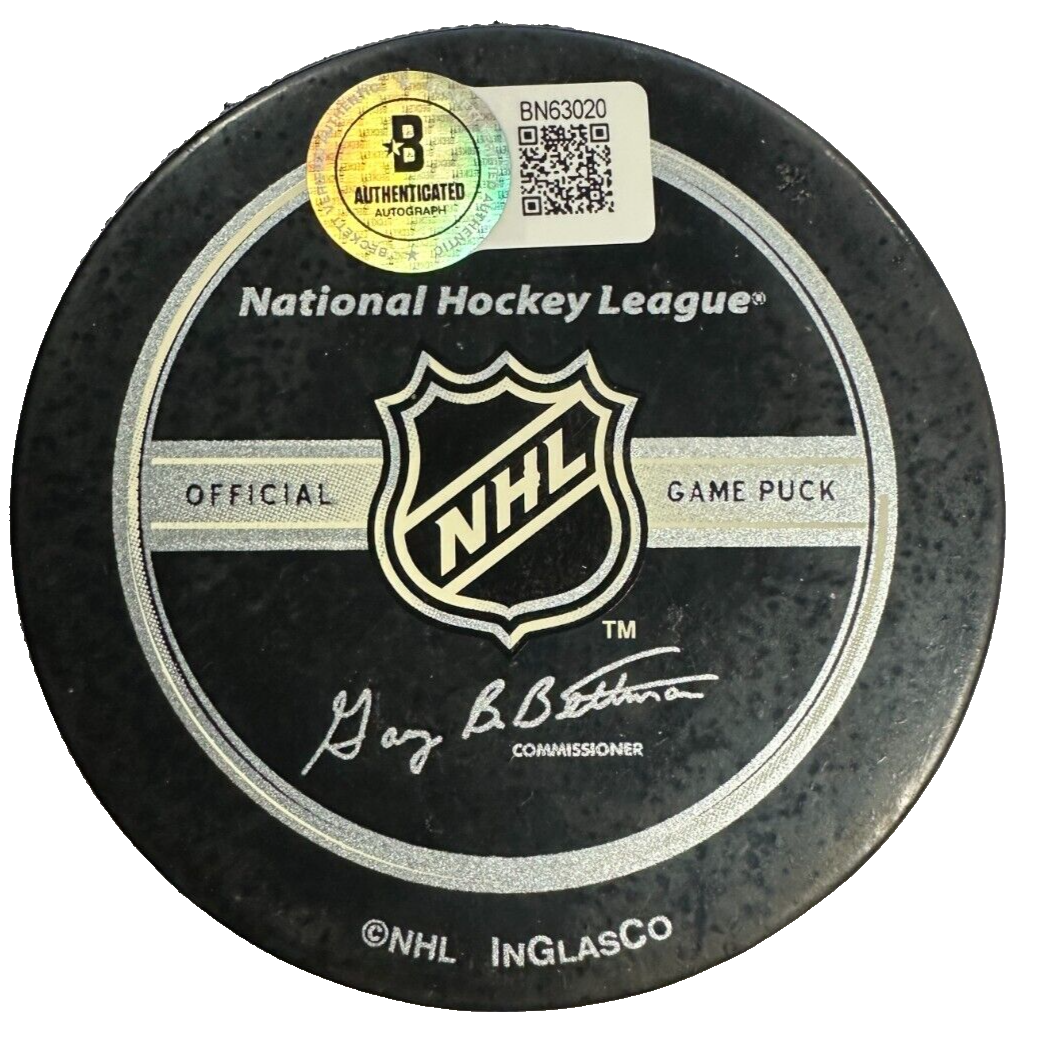 We're offering this Chicago Blackhawks Official Game Puck Autographed by NHL All-Star Jonathan ToewsIt's in nm condition and it comes with a Hologram Issued by BAS (BN63020) Beckett Authentication Services and his signature is guaranteed to be 100% authentic. The puck will be shipped in a plastic display square, and we will combine on shipping for similar items.