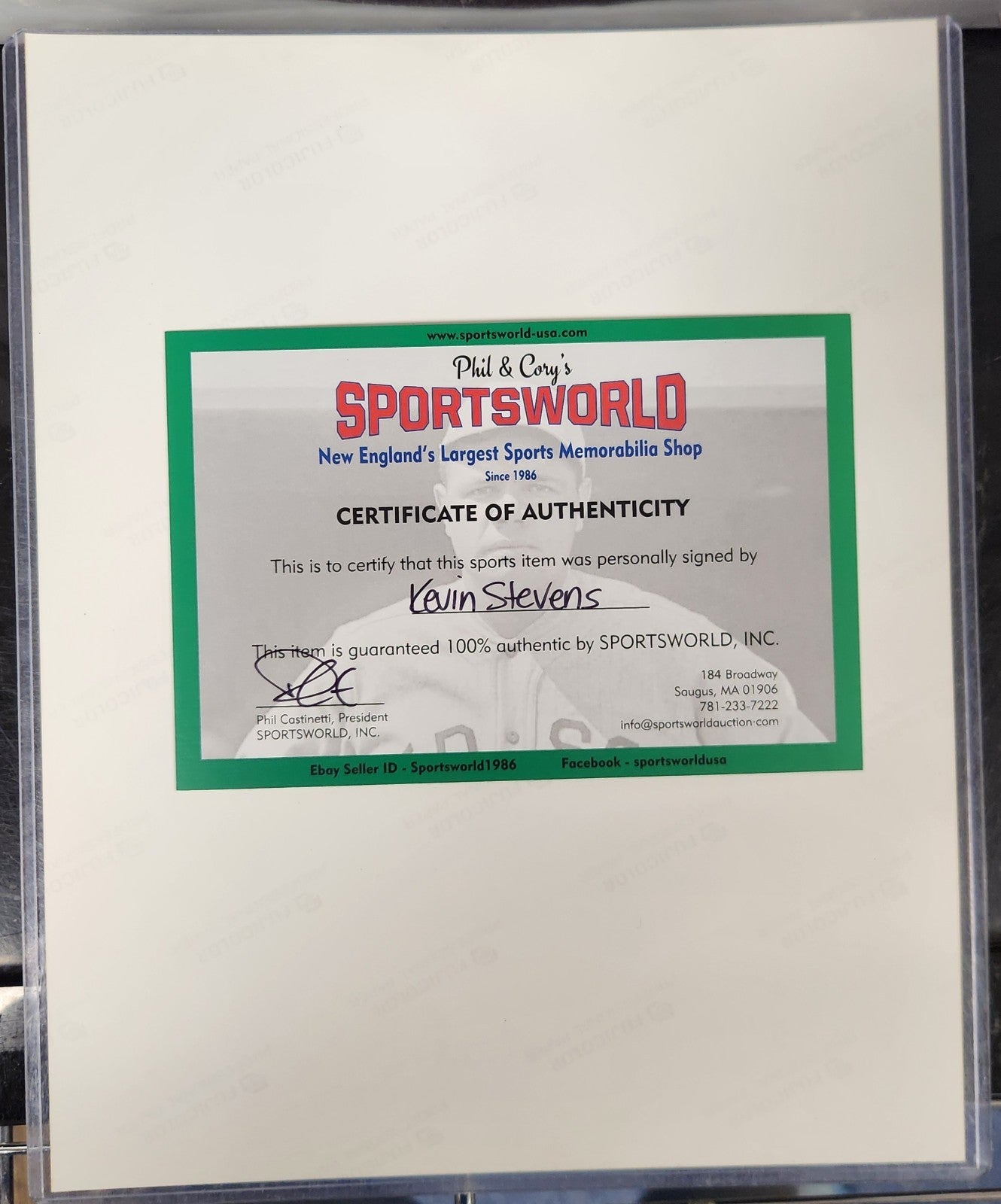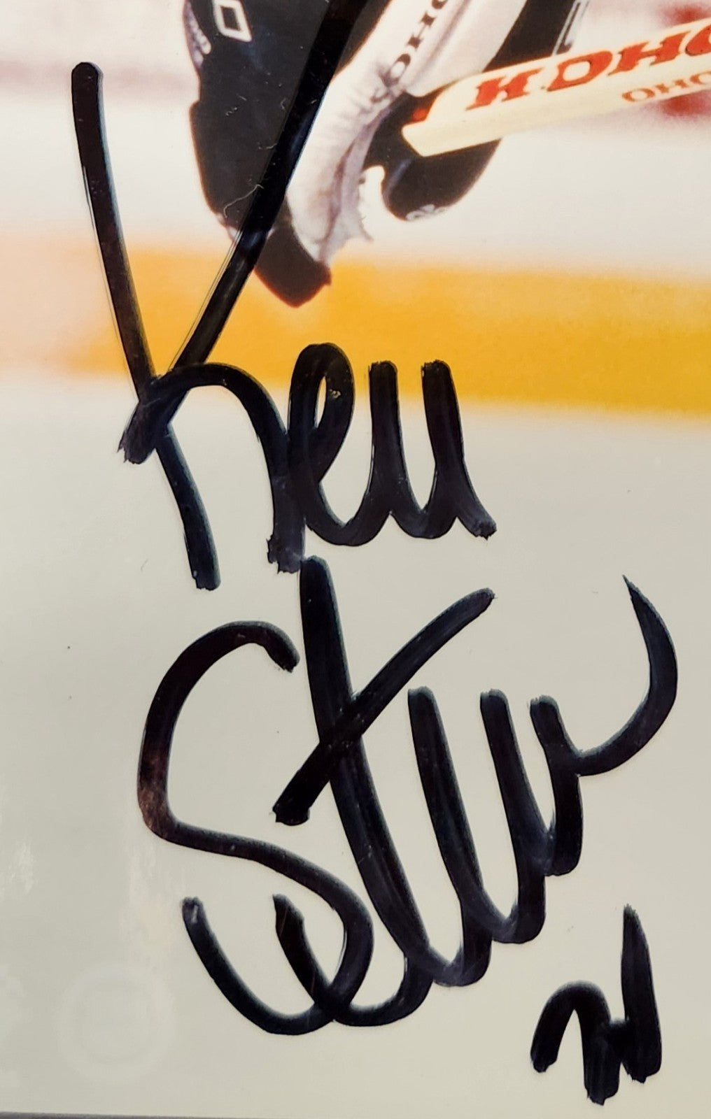 This original photo, signed by Kevin Stevens himself, comes with a Certificate of Authenticity, ensuring its legitimacy and value. It's an exceptional find for collectors and fans alike, offering a tangible connection to the sport and a standout display piece for any dedicated hockey memorabilia collection.