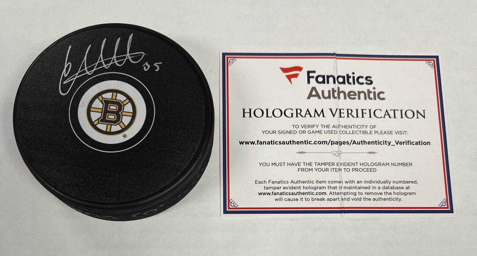 Linus Ullmark Signed Puck Autographed Boston Bruins Fanatics