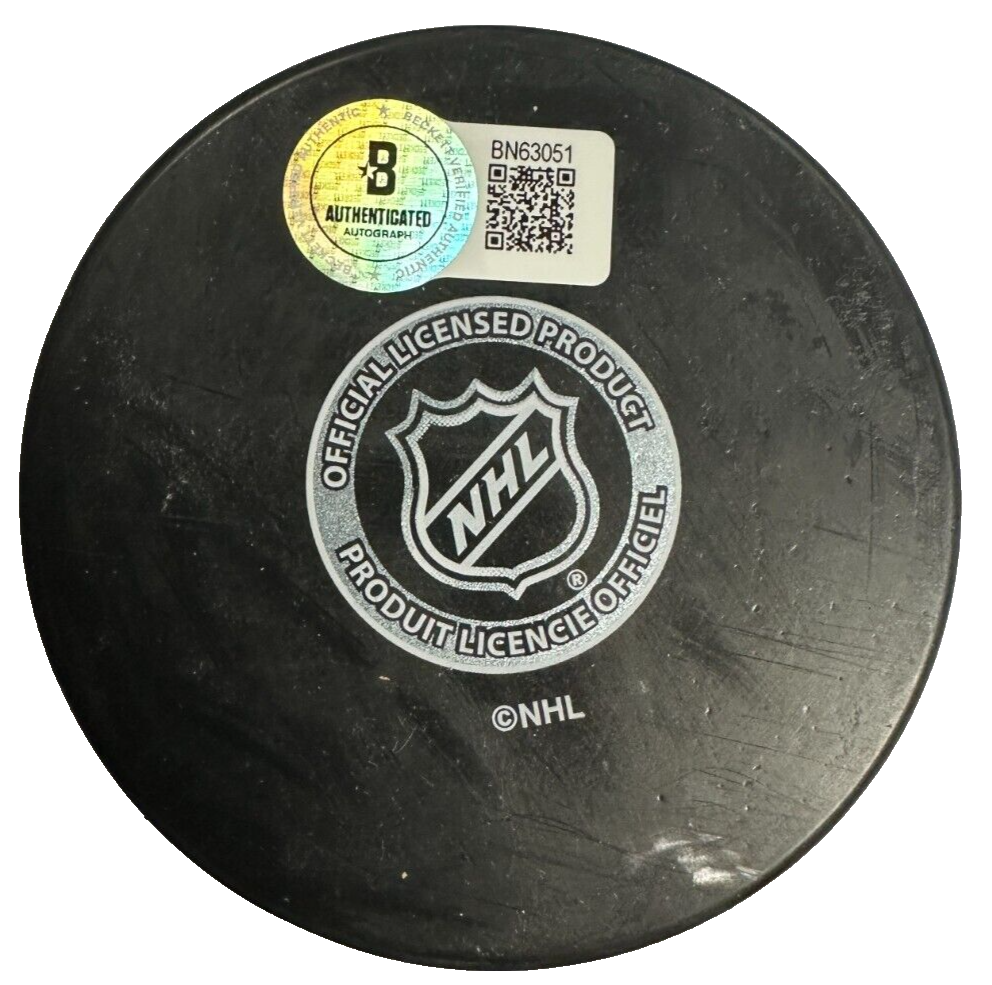 We're offering this Chicago Blackhawks Hockey Puck Autographed by NHL All-Star Marian Hossa. It's in nm condition and it comes with a Hologram Issued by BAS (BN63051) Beckett Authentication Services and his signature is guaranteed to be 100% authentic. The puck will be shipped in a plastic display square, and we will combine on shipping for similar items.