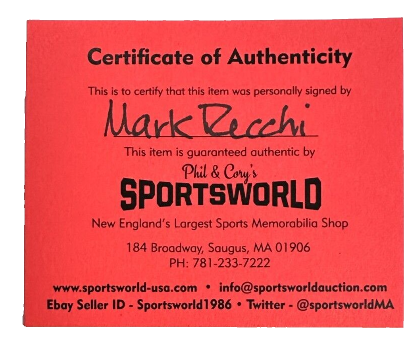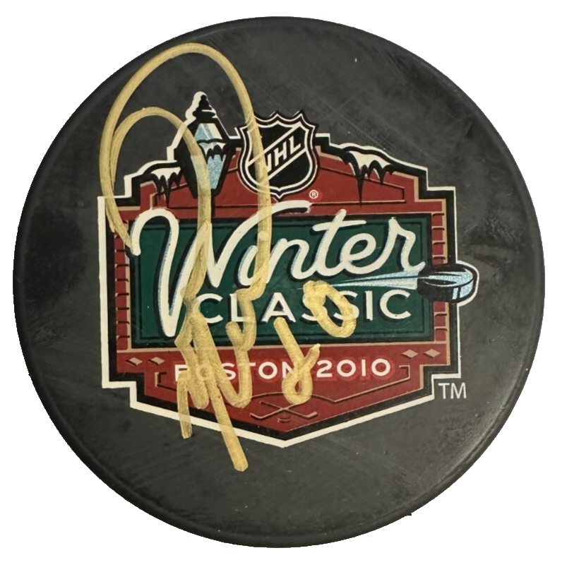 We're offering this 2010 Winter Classic Hockey Puck Autographed by Hockey Hall of Famer Mark Recchi of the Boston Bruins. It's in nm condition and comes with a COA issued by Sportsworld, New England's Largest Sports Memorabilia Store and his signature is guaranteed to be 100% authentic. The puck will be shipped in a plastic display square, and we will combine on shipping for similar items!