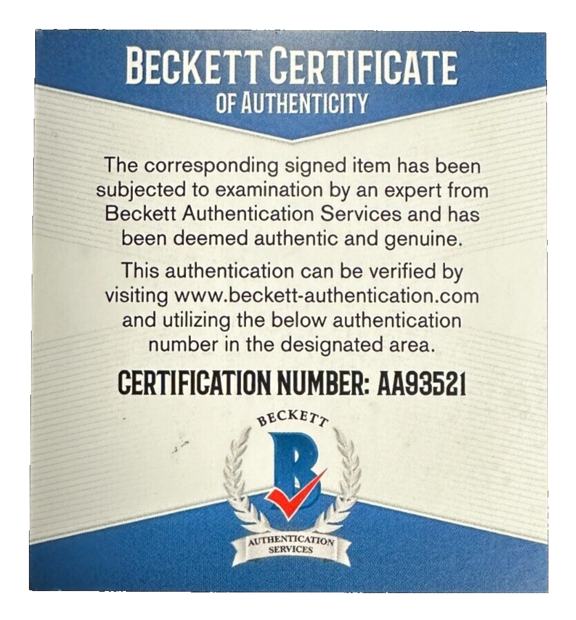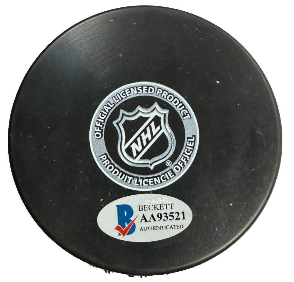 We're offering this Philadelphia Flyers Hockey Puck Autographed by Hockey Hall of Famer Mark Recchi. It's in nm condition and comes with a COA & Matching Hologram issued by BAS Beckett Authentication Services and his signature is guaranteed to be 100% authentic. We do have multiple pucks signed by Mark so the puck that you receive might not be the exact puck in the photo. The puck will be shipped in a plastic display square, and we will combine on shipping for similar items!