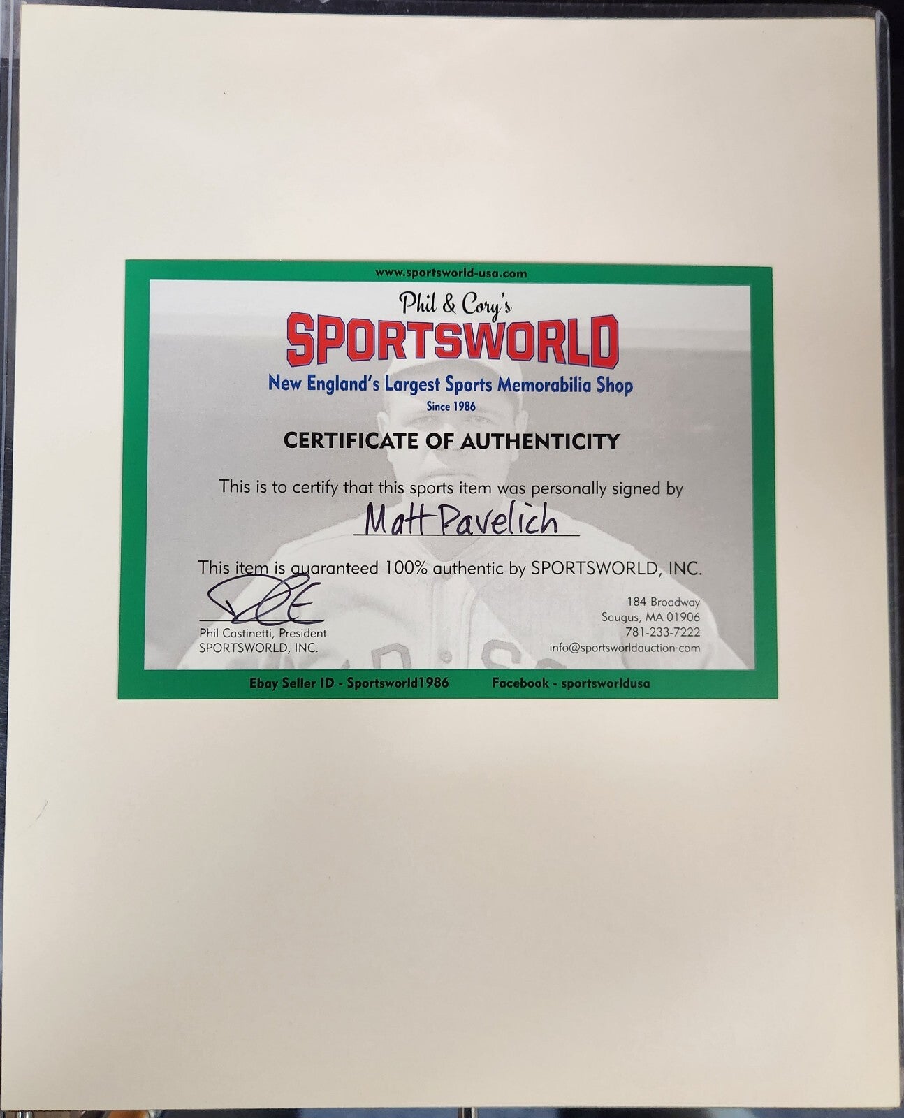 This 8x10 photo features Matt Pavelich, a notable NHL referee and Hockey Hall of Famer. The photo is signed and comes with a Certificate of Authenticity for added assurance. It is an original print and not a reprint, making it a valuable addition to any sports memorabilia collection. The focus of the photo is on Pavelich's signature, making it a must-have for fans and collectors alike. The category for this item is under Sports Mem, Cards & Fan Shop and Autographs-Original, specifically under Hockey-NHL and Photos.