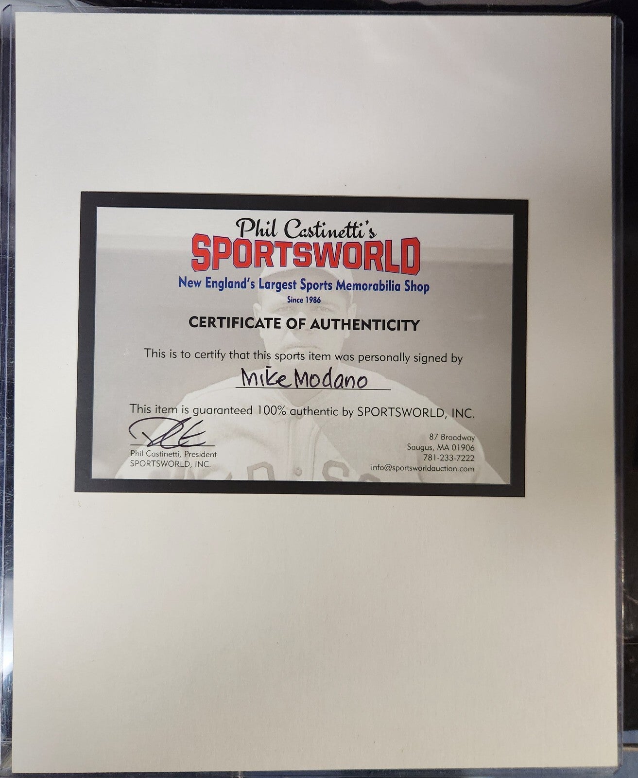 The COA is from Sportsworld- New England's largest sports memorabilia shop. Please refer to our pictures to be sure.