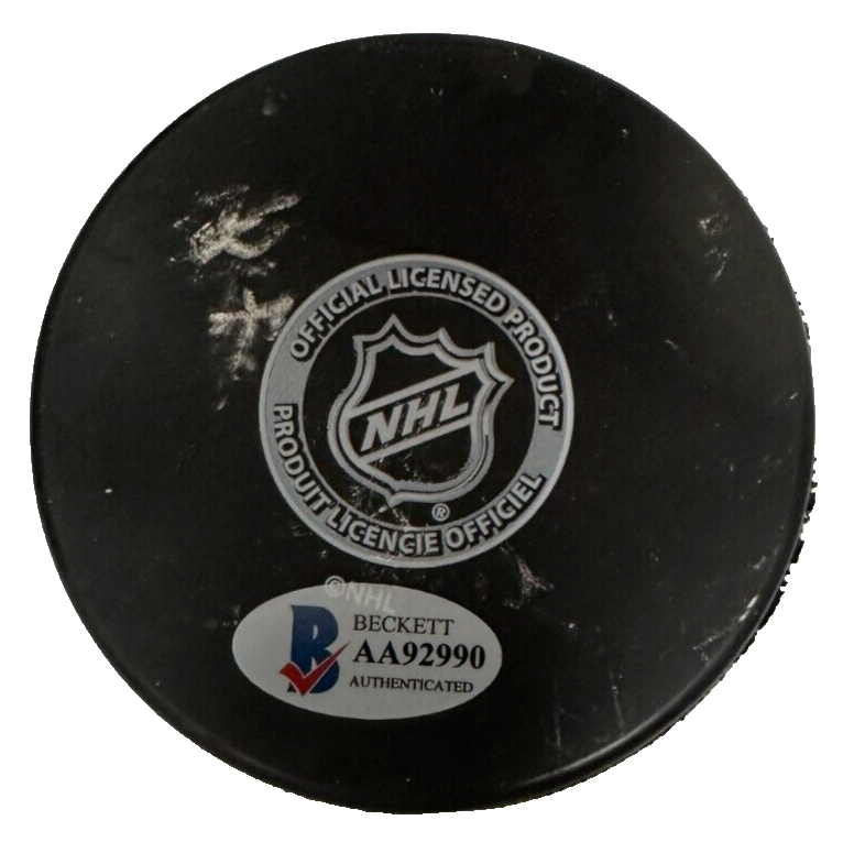 We're offering this Toronto Maple Leafs Hockey Puck Autographed & Inscribed with "1967 Stanley Cup" by former Star Mike Walton. It's in nm condition and it comes with a COA & Matching Hologram issued by BAS Beckett Authentication Services and his signature is guaranteed to be 100% authentic. We do have multiple pucks signed by Mike so the puck that you receive might not be the puck in the photo. It will be shipped in a plastic display square, and we will combine on shipping for similar items!