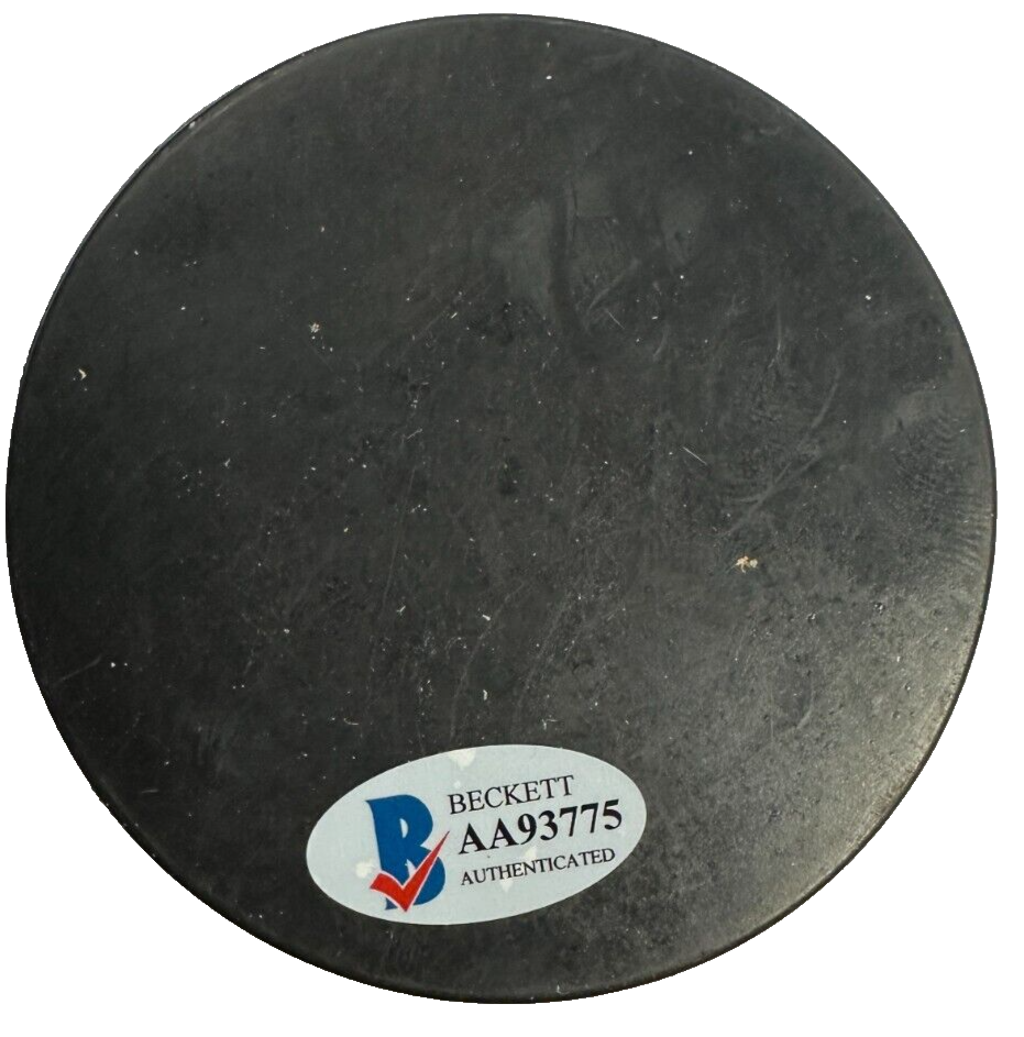 We're offering this Boston Bruins Photo Puck Autographed by Hockey Hall of Famer Milt Schmidt. It's in nm condition and it comes with a CO& Matching Hologram issued by BAS Beckett Authentication Services and his signature is guaranteed to be 100% authentic. We do have multiple pucks signed by Milt so the pucks that you receive might not be the puck in the photo. It will be shipped in a plastic display square, and we will combine on shipping for similar items!