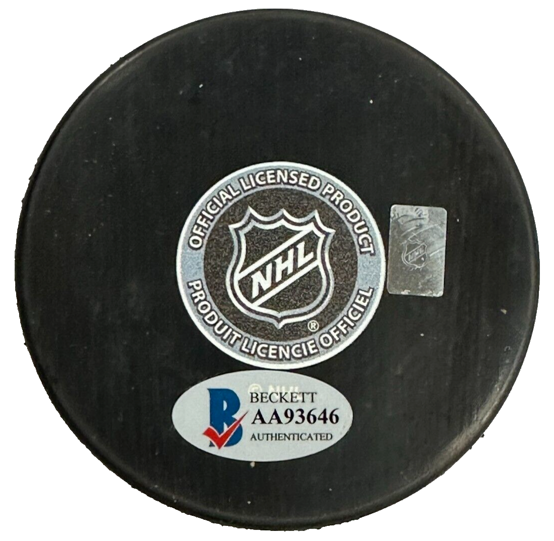 We're offering Official Boston Bruins Hockey Puck Autographed by All-Star Goalie Pete Peeters. It's in nm-mt condition and it comes with a COA & Matching Hologram issued by BAS Beckett Authentication Services and his signature is guaranteed to be 100% authentic. It will be shipped in a plastic display square
