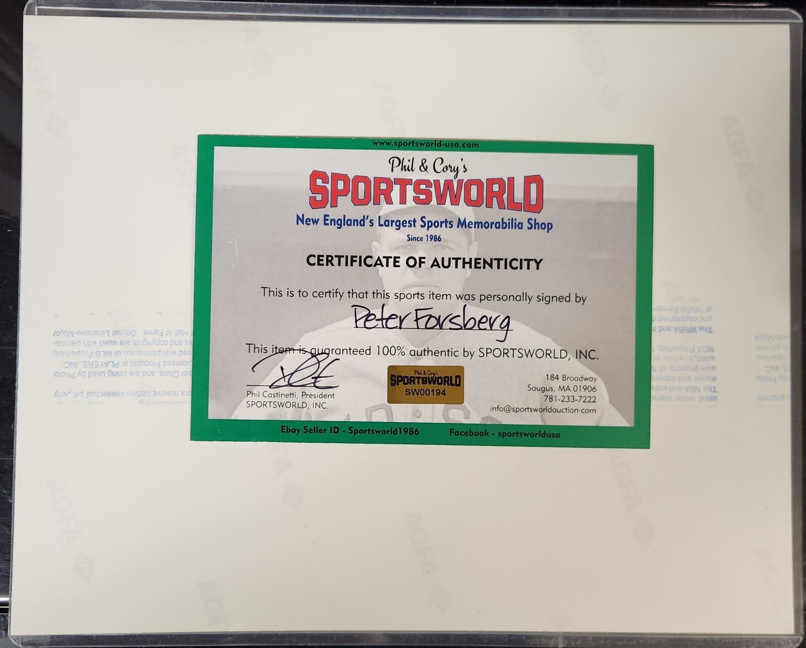 We're offering this 8x10 photo autographed by Hockey Hall of Famer Peter Forsberg of the Colorado Avalanche skating alongside Joe Sakic. It comes with a COA issued by Sportsworld, New England's Largest Sports Memorabilia Store and his signature is guaranteed to be 100% authentic. We will combine shipping on similar items.