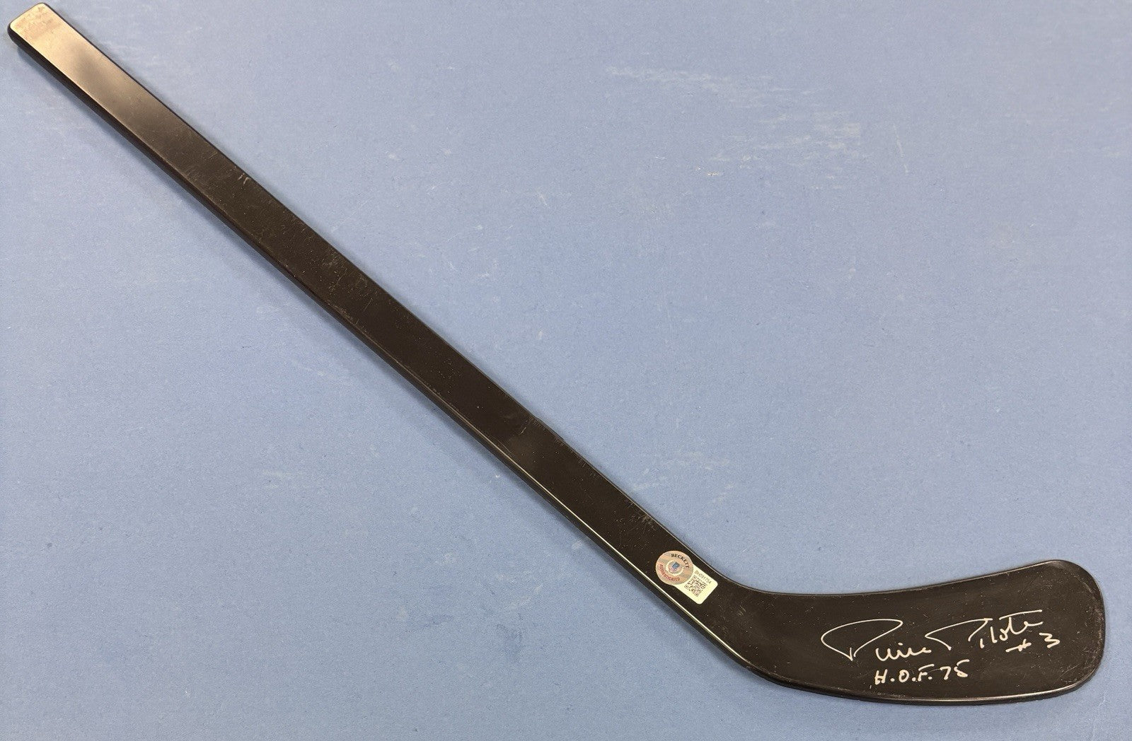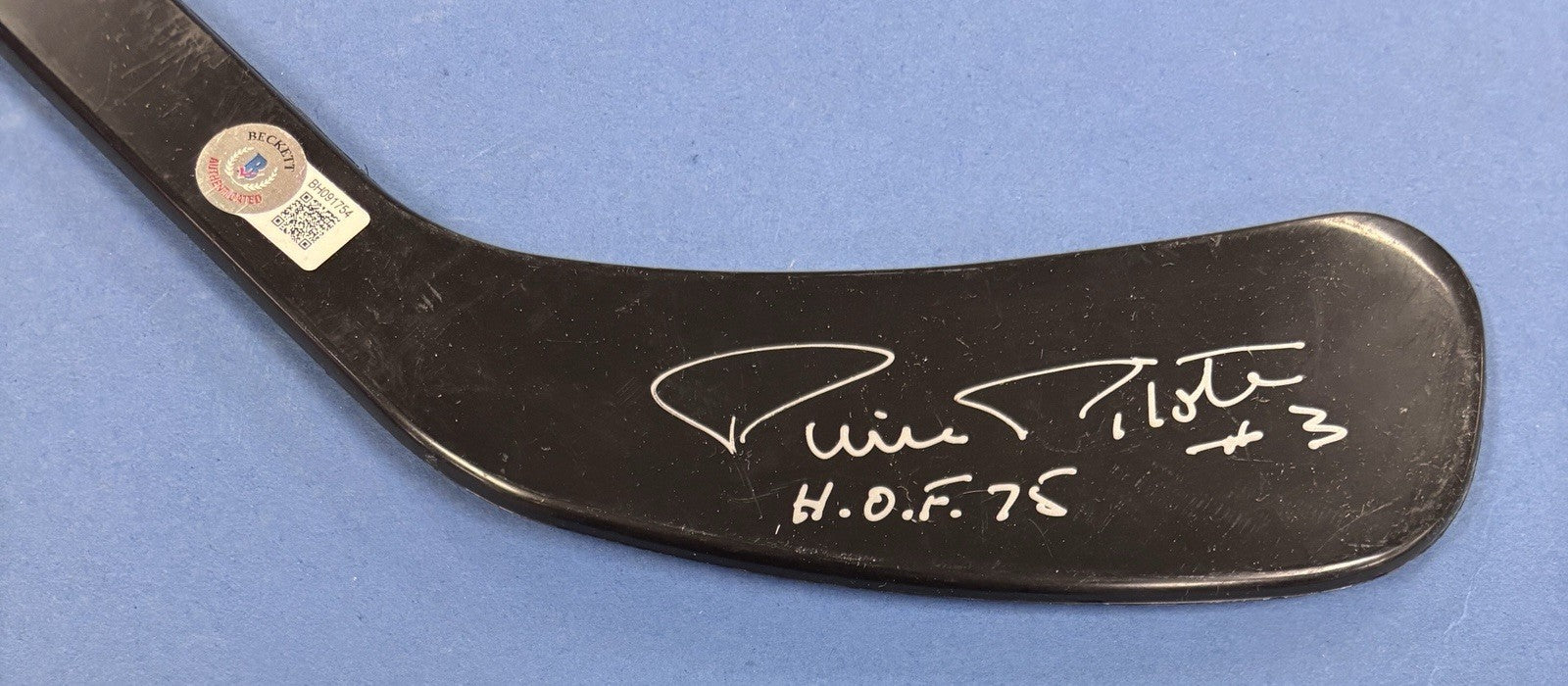 The signed mini hockey stick. This unique item is a must-have for hockey fans and collectors looking to own a piece of history from one of the sport's most respected officials. The mini stick adds a personal touch with the players signature, making it a valuable and cherished item for any hockey enthusiast.