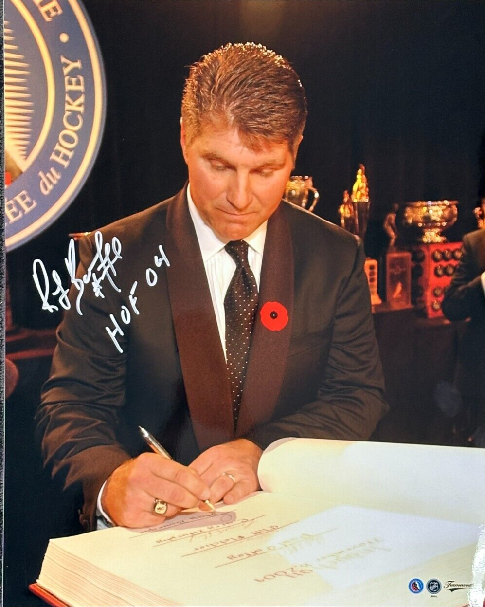 Ray Bourque Autographed 16x20 Photo Hockey Hall of Fame Induction W/ HOF 04