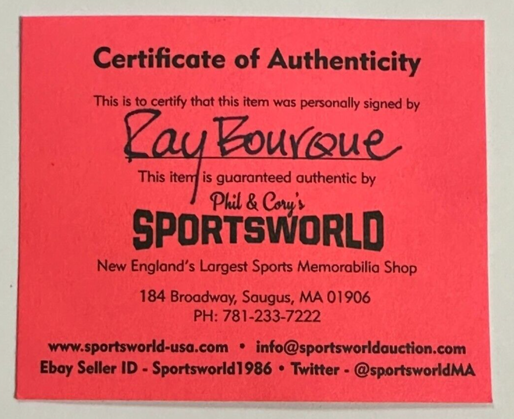 Ray Bourque of the Boston Bruins. It's in nm condition and it comes with a COA Issued by Sportsworld, New England's Largest