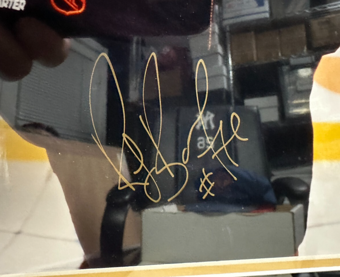 We're offering this 16" x 20" Framed Photo Autographed by Hockey Hall of Famers Ray Bourque of the Boston Bruins & Mario Lemieux of the Pittsburgh Penguins. It's in perfect condition and they come with a COA & Matching Hologram issued by JSA Authentication and both signatures are guaranteed to be 100% authentic. The entire piece measures approx. 23" x 31" and we will combine on shipping for similar items!