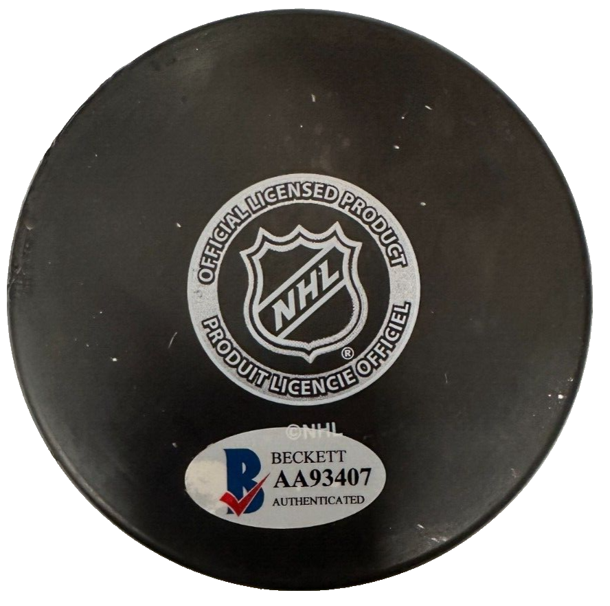 We're offering Boston Bruins Hockey Puck Autographed & Inscribed with "1970 Stanley Cup" by former Star Rick Smith. It's in nm-mt condition. It comes with a COA & Matching Hologram issued by BAS Beckett Authentication Services and his signature is guaranteed to be 100% authentic. We do have multiples puck signed by Rick so the puck that you receive might not be the exact puck in the photo. It will be shipped in a plastic display square, and we will combine on shipping for similar items.