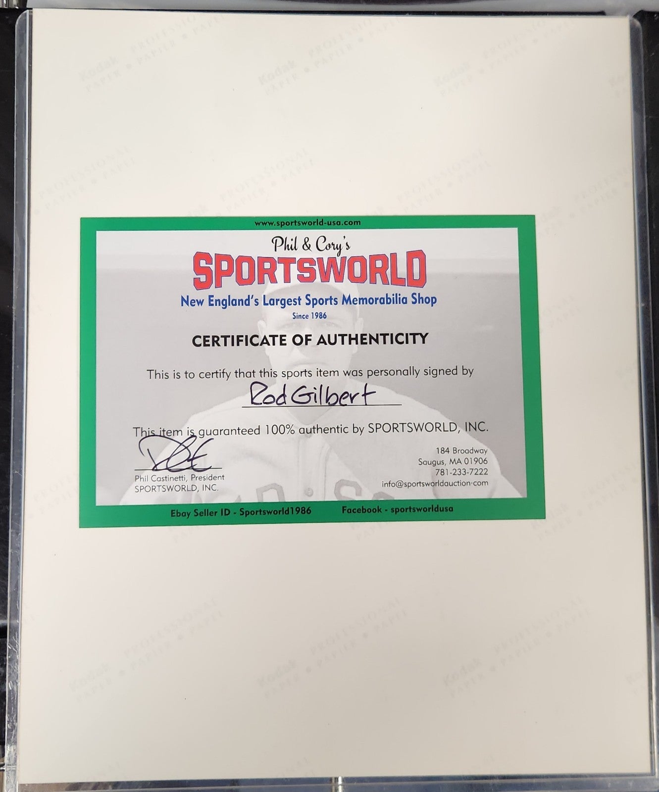 Capture a piece of hockey history with this Rod Gilbert autographed 8x10 photo, featuring the New York Rangers legend inscribed in the photo. This original piece comes with a Certificate of Authenticity, ensuring its legitimacy and making it a must-have for any true sports memorabilia collector. Perfect for fans of the sport or those who admire the greats of hockey, this photo is a remarkable addition to any collection.