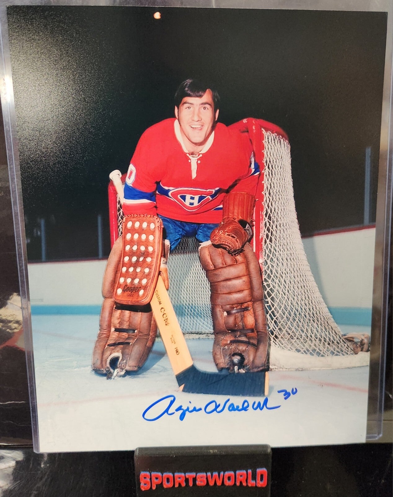 This 8x10 photo features former Montreal Canadiens goalie Rogie Vachon in action. The signature on the photo is guaranteed authentic and comes with a certificate of authenticity. Fans of the Canadiens and hockey collectors alike will appreciate this original piece of memorabilia. The photo is in excellent condition, ready to display or add to your collection.