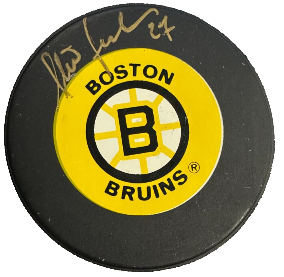 Steve Leach Autographed Boston Bruins Hockey Puck NHL