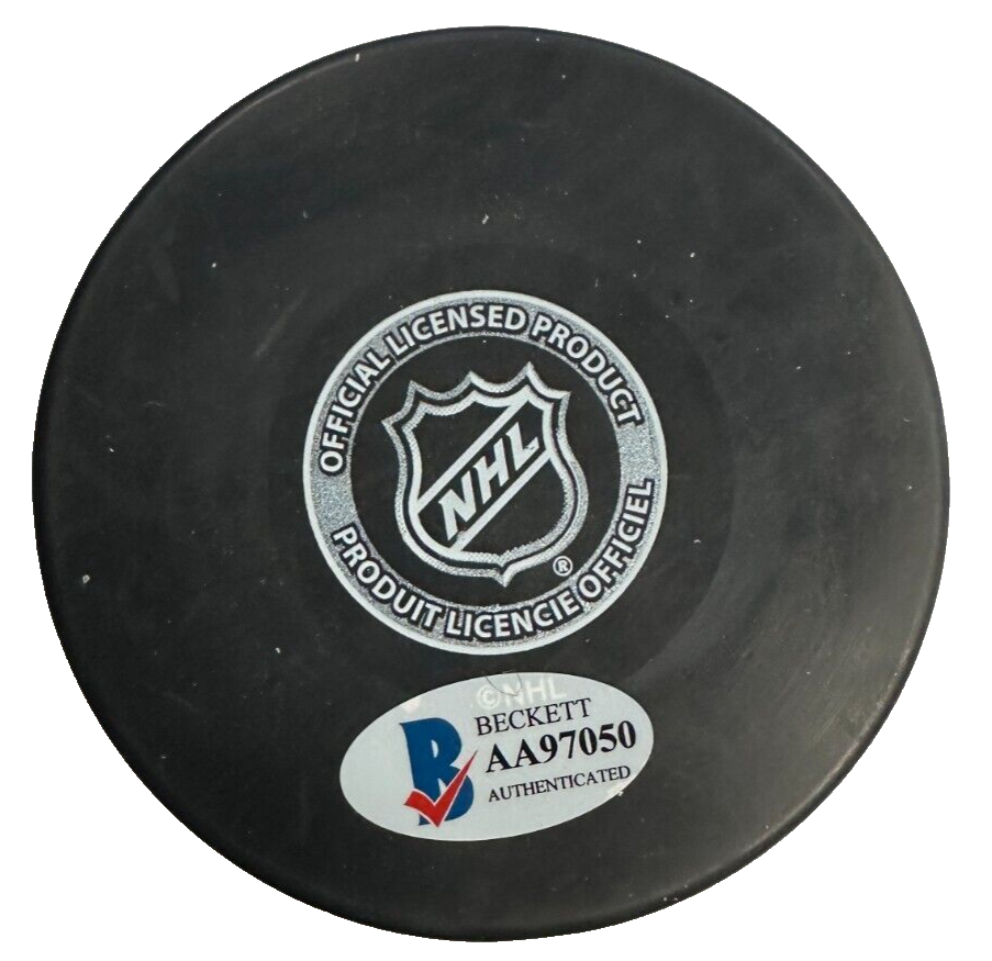 We're offering this Official St. Louis Blues Hockey Puck Autographed by former star Steve Leach. It's in nm condition and it comes with a COA & Matching Hologram Issued by BAS Beckett Authentication Services and his signature is guaranteed to be 100% authentic. We do have multiples of this puck signed by Steve, so the puck you receive might not be the exact puck in the photo. The puck will be shipped in a plastic display square.
