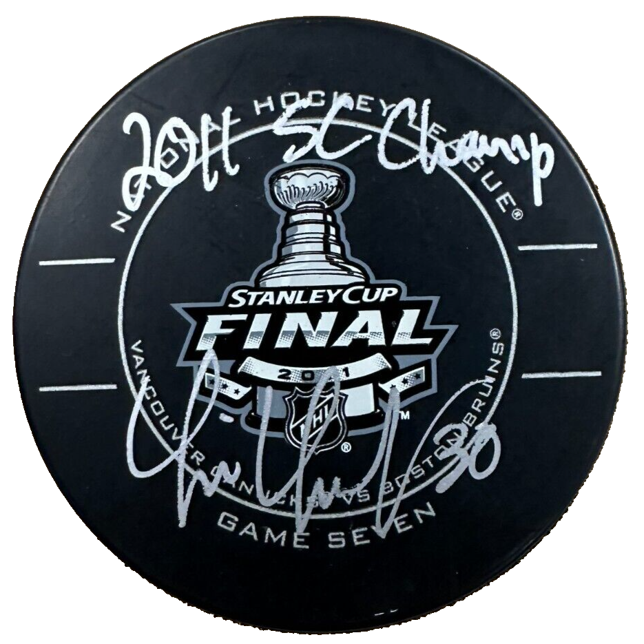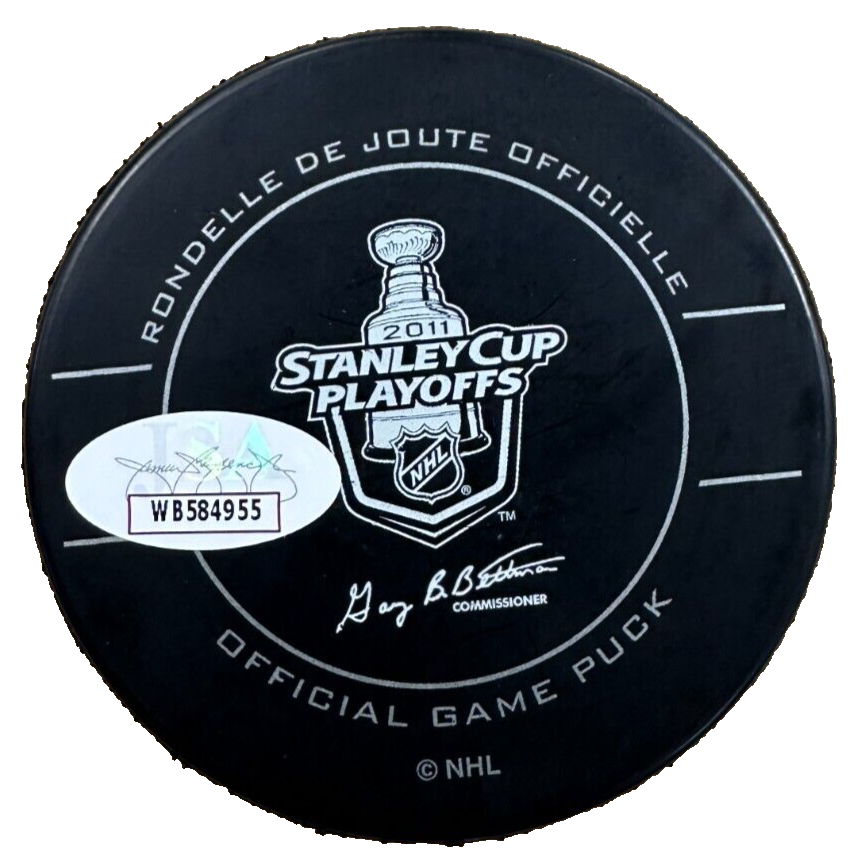 We're offering this 2011 Stanley Cup Finals Game 7 Puck Autographed & Inscribed with "2011 SC Champs" by All-Star Goalie Tim Thomas of the Boston Bruins. It's in nm condition and it comes with a COA & Matching Hologram Issued by JSA Authentication and his signature is guaranteed to be 100% authentic. The puck will be shipped in a plastic display square and, we will combine on shipping for similar items! This was just authenticated by JSA and might not appear in their database as of yet.