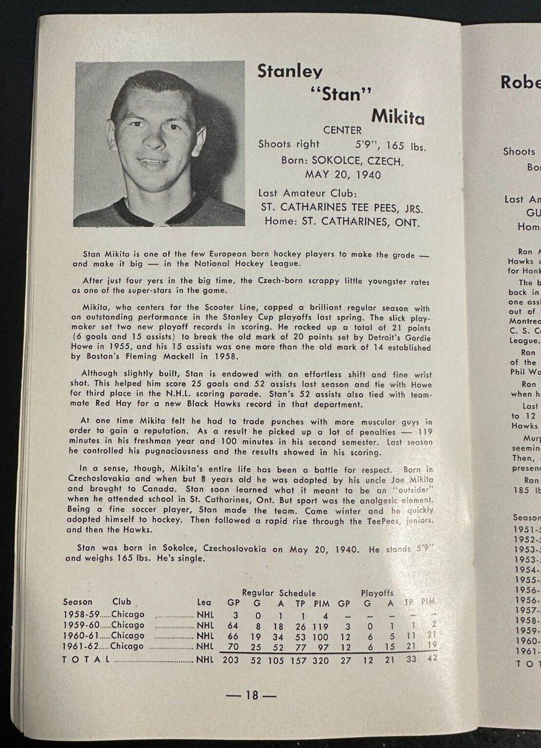 Vintage 1962-63 Chicago Black Hawks Press, Radio & Televison Guide NHL