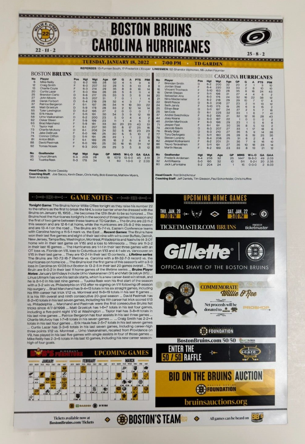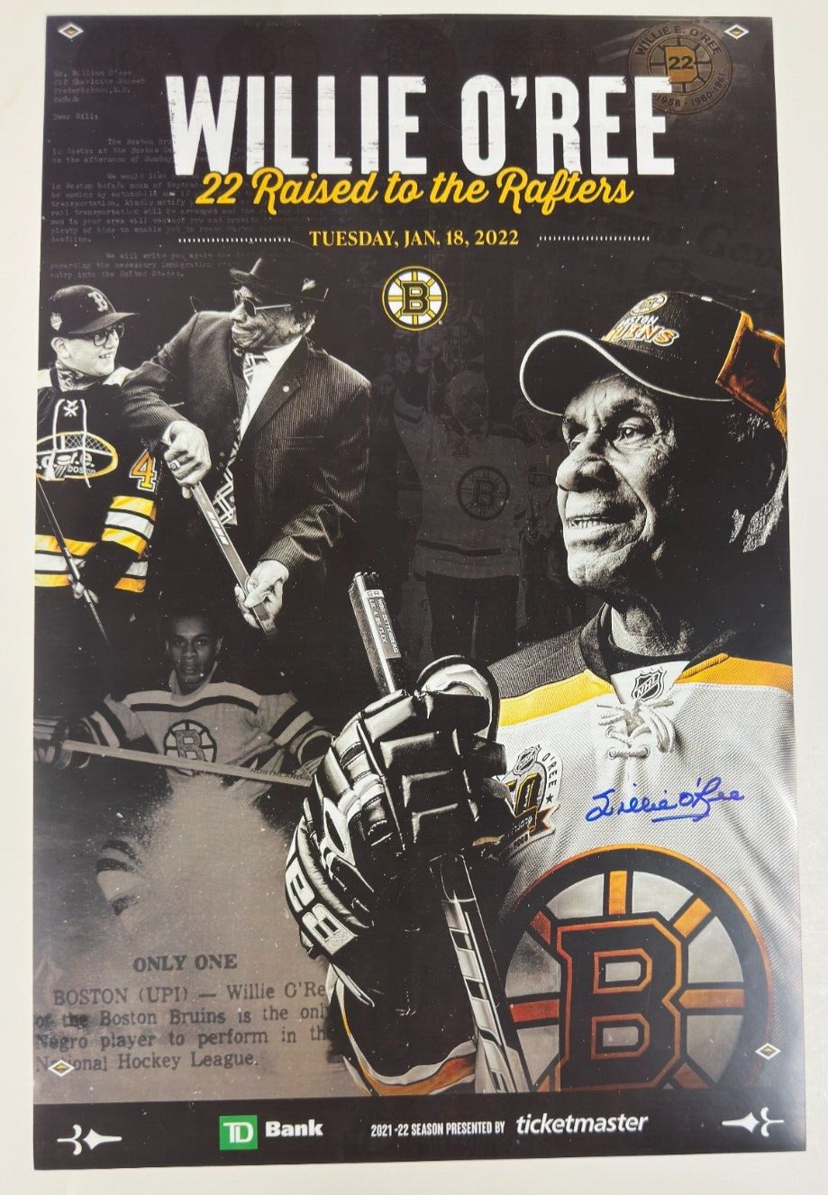 Willie O'Ree Signed Bruins 1/18/2022 Number Retirement Night Line-Up Poster