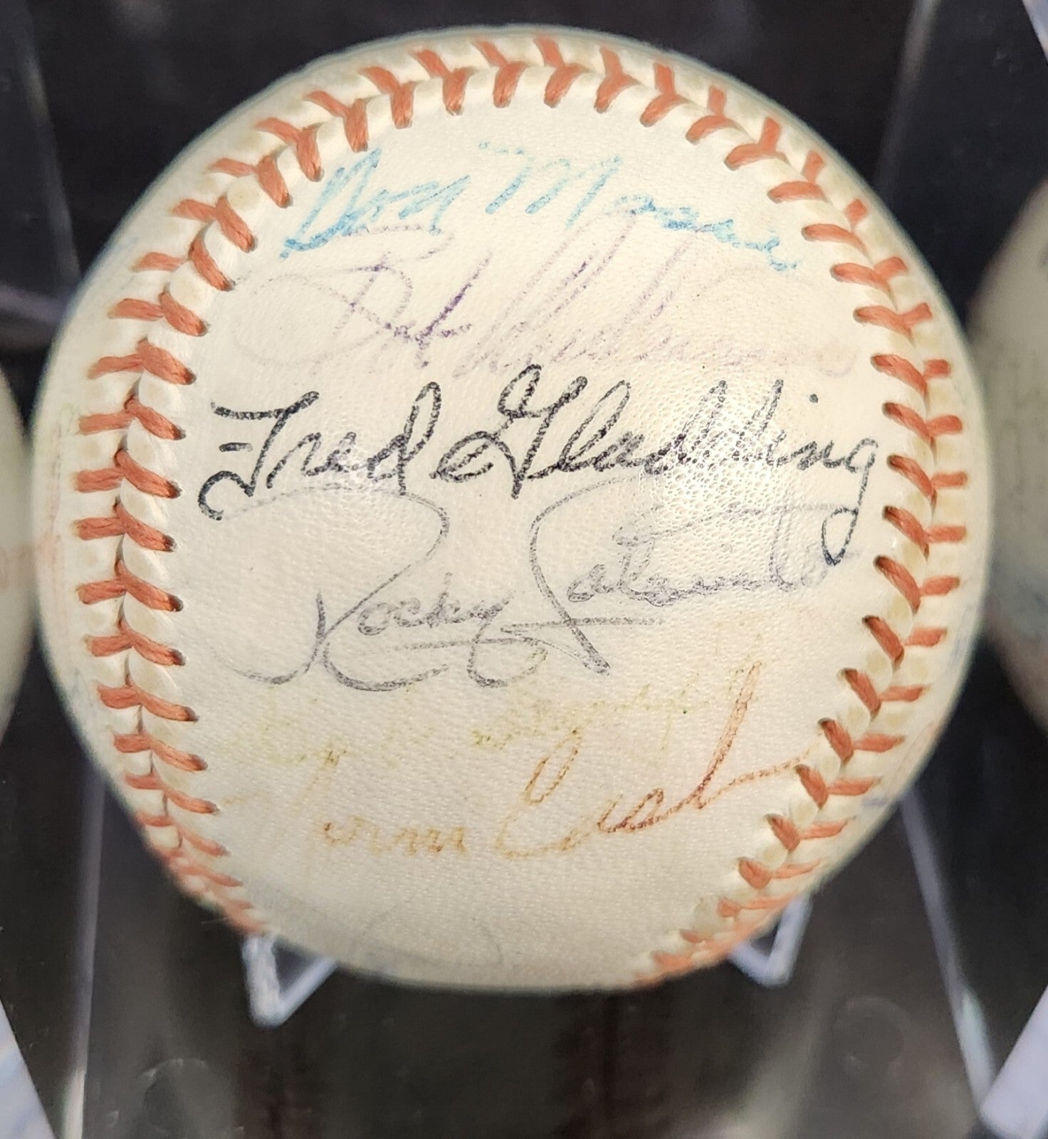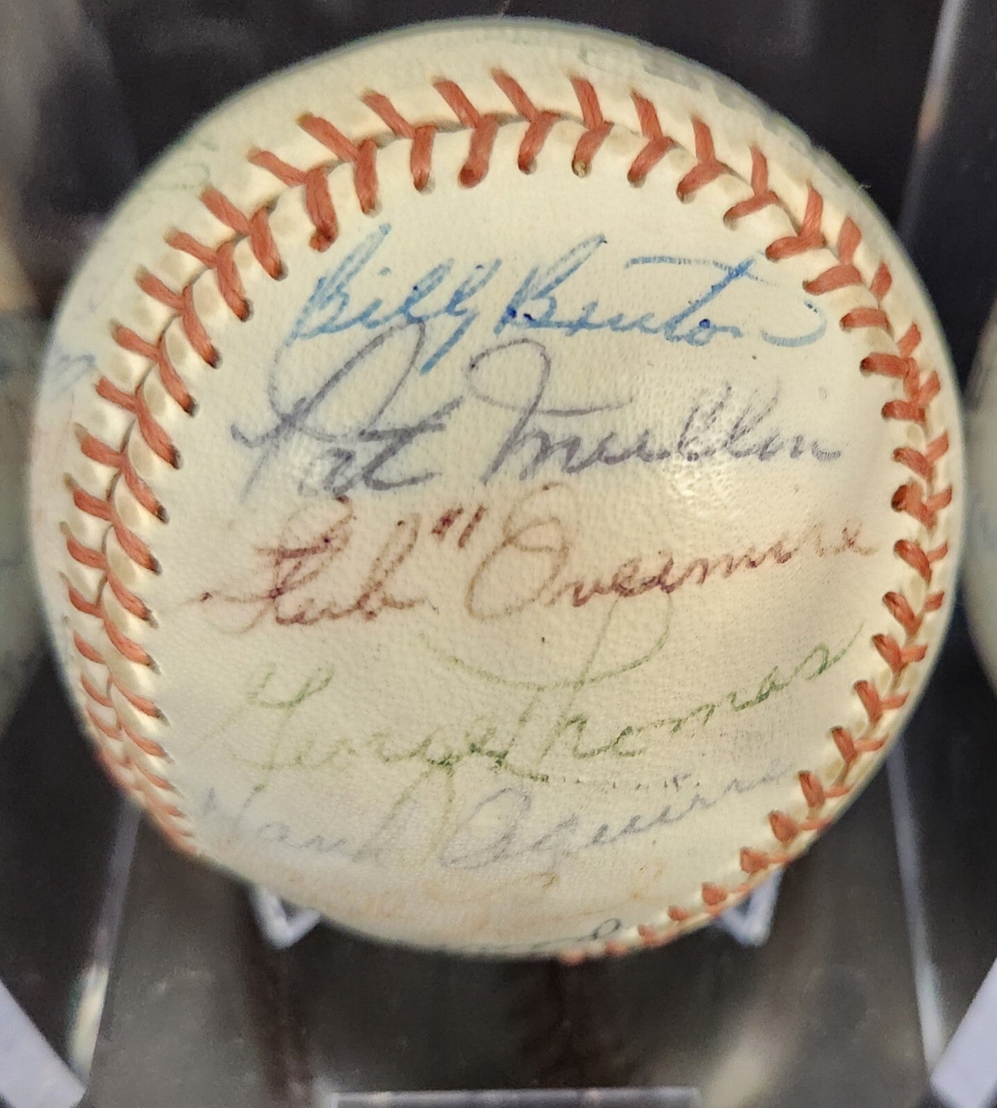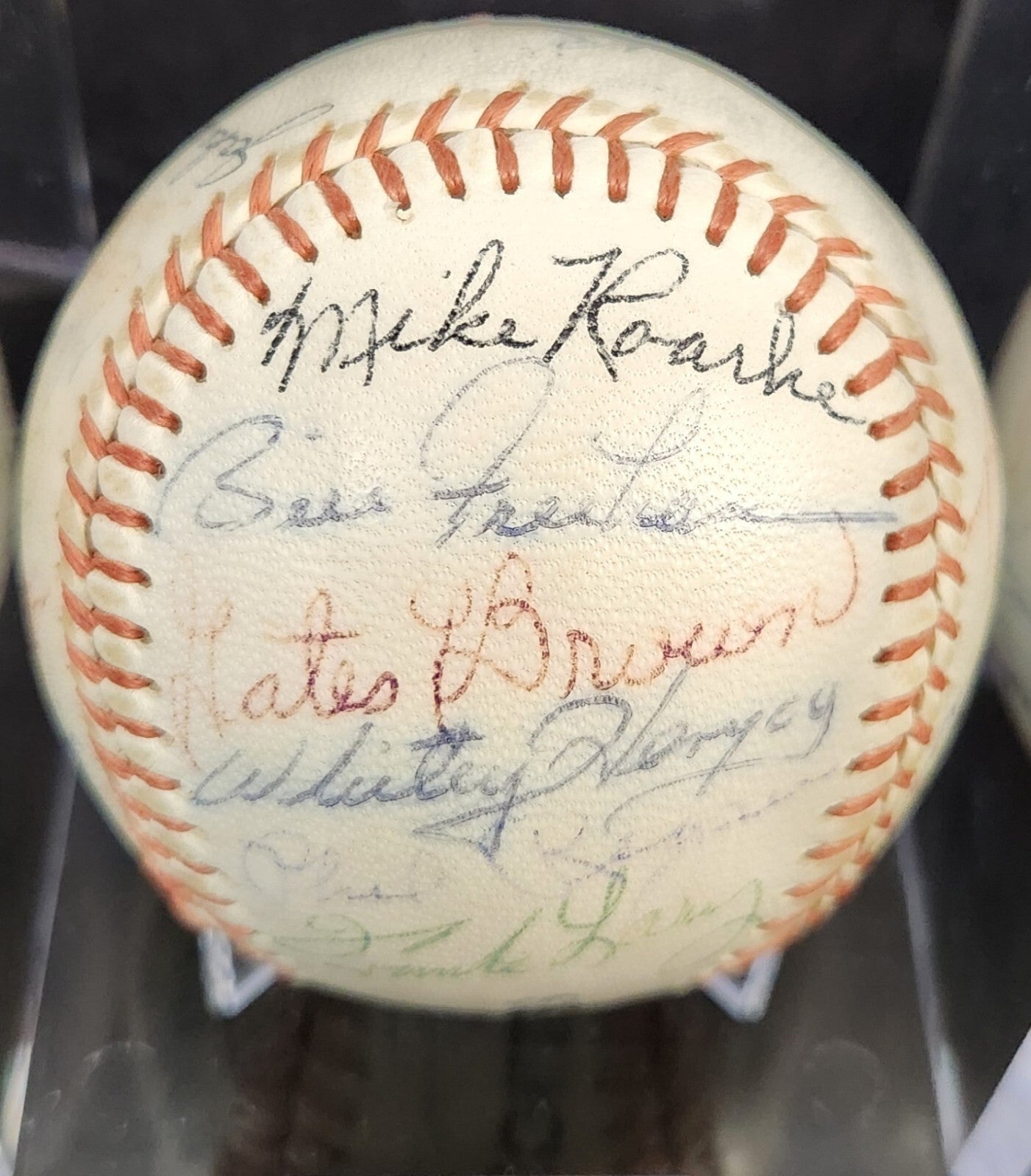 This unique baseball is a must-have for any avid sports fan. It features the signatures of the 1963 Detroit Tigers team, including Al Kaline , Whitey Herzog and Jim Bunning who are all in the Hall of Fame. Other players include Norm Cash, Rocky Colavito, Bill Freehan, Hank Aguirre, Terry Fox, Gus Triandos, Frank Larry, Alan Koch, Fred Gladding, Phil Regan, Tom Sturdivant, Mike Roarke, Don Mossi, Bubba Phillips, Dick McAuliffe, Don Wert, Jake Wood, George Thomas, Bill Faul, Gates Brown and Bill Bruton etc. The ball have a Detroit Tigers stamp on it and we are not sure of the manufacturer's.