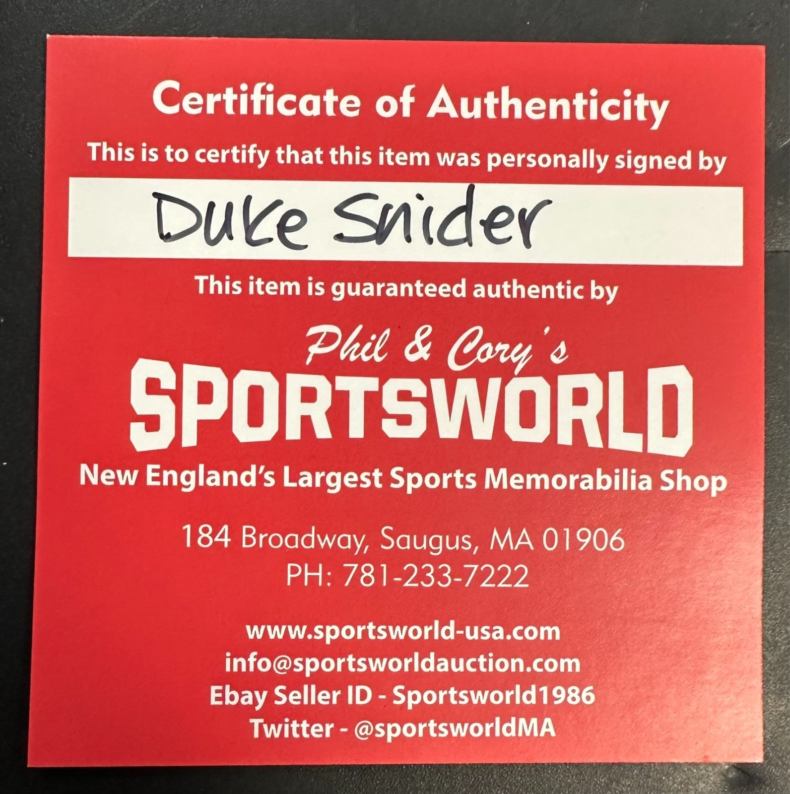 We're offering this Official National League Baseball Autographed by Hall of Famer Duke Snider of the Brooklyn Dodgers. It's in nm condition a comes with a COA Issued by Sportsworld New England's Largest Sports Memorabilia Store and his signature is guaranteed to be 100% authentic. The ball will be shipped in a plastic display cube, and we will combine on shipping for similar items!