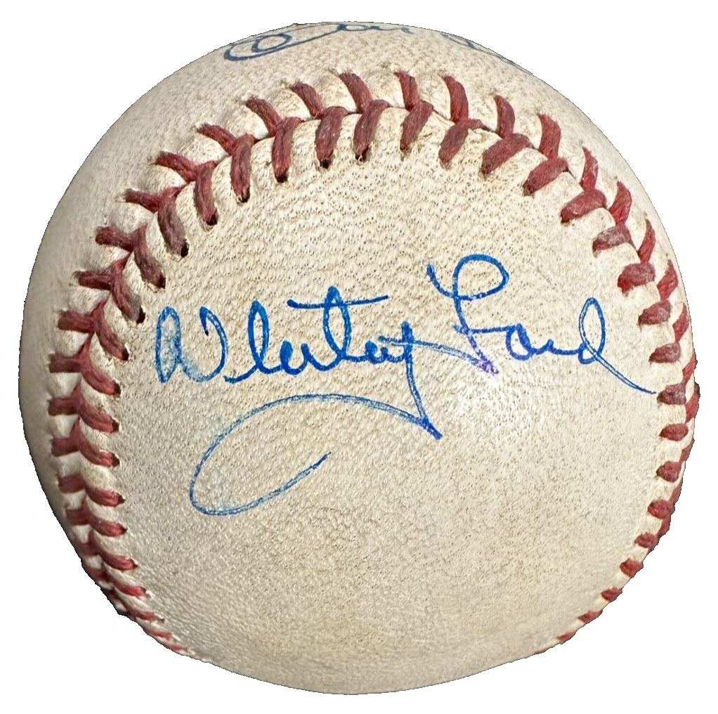 We're offering this Joe Cronin American League Baseball Autographed by Hall of Famer Whitey Ford and All-Star Don Larsen of the New York Yankees. It's in ex condition a comes with a COA Issued by BAS (BH091933) Beckett Authentication Servies and their signatures are guaranteed to be 100% authentic. The ball will be shipped in a plastic display cube, and we will combine on shipping for similar items!