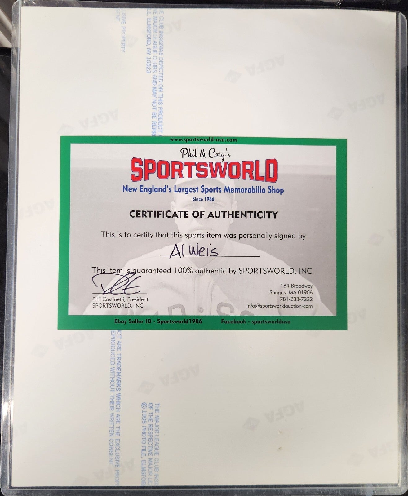 The product is an original 8x10 photo signed by Al Weis, a former player for the Chicago White Sox and New York Mets. It comes with a Certificate of Authenticity (COA) to verify the signature's authenticity. This collectible item would be a great addition to any baseball fan's memorabilia collection, particularly for fans of the mentioned teams or those interested in Al Weis' career in baseball.