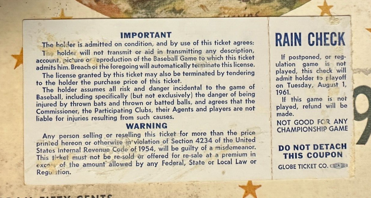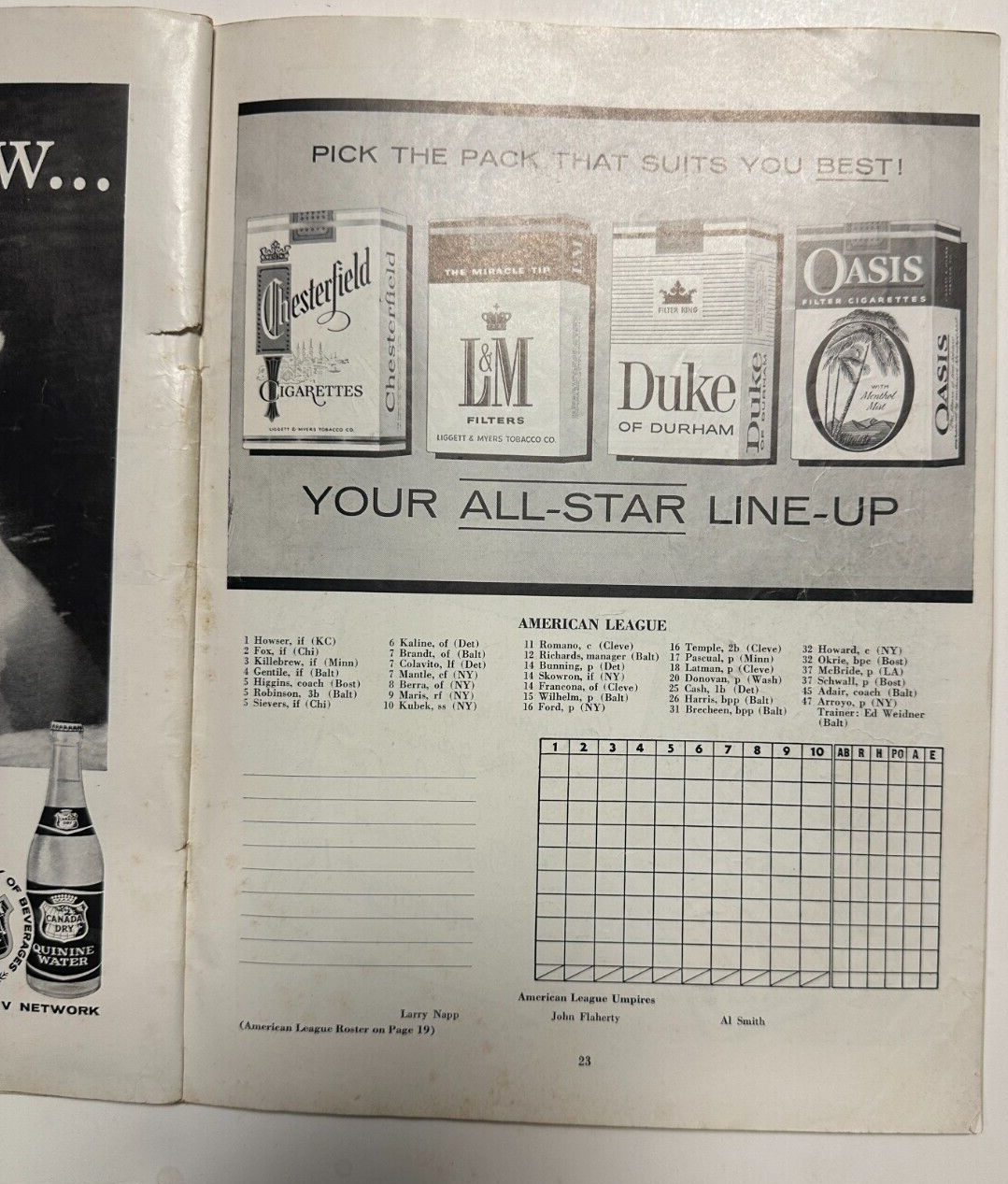 1961 MLB Baseball All-Star Game Program & Ticket Stub 5-4 NL Clemente 3B 2 RBI